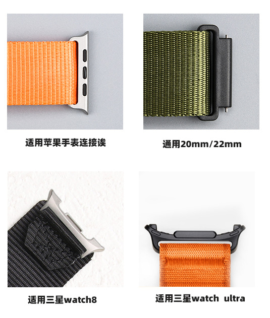 适用苹果iwatch手表带三星通用20mm22mm尼龙编织回环帆布运动表带