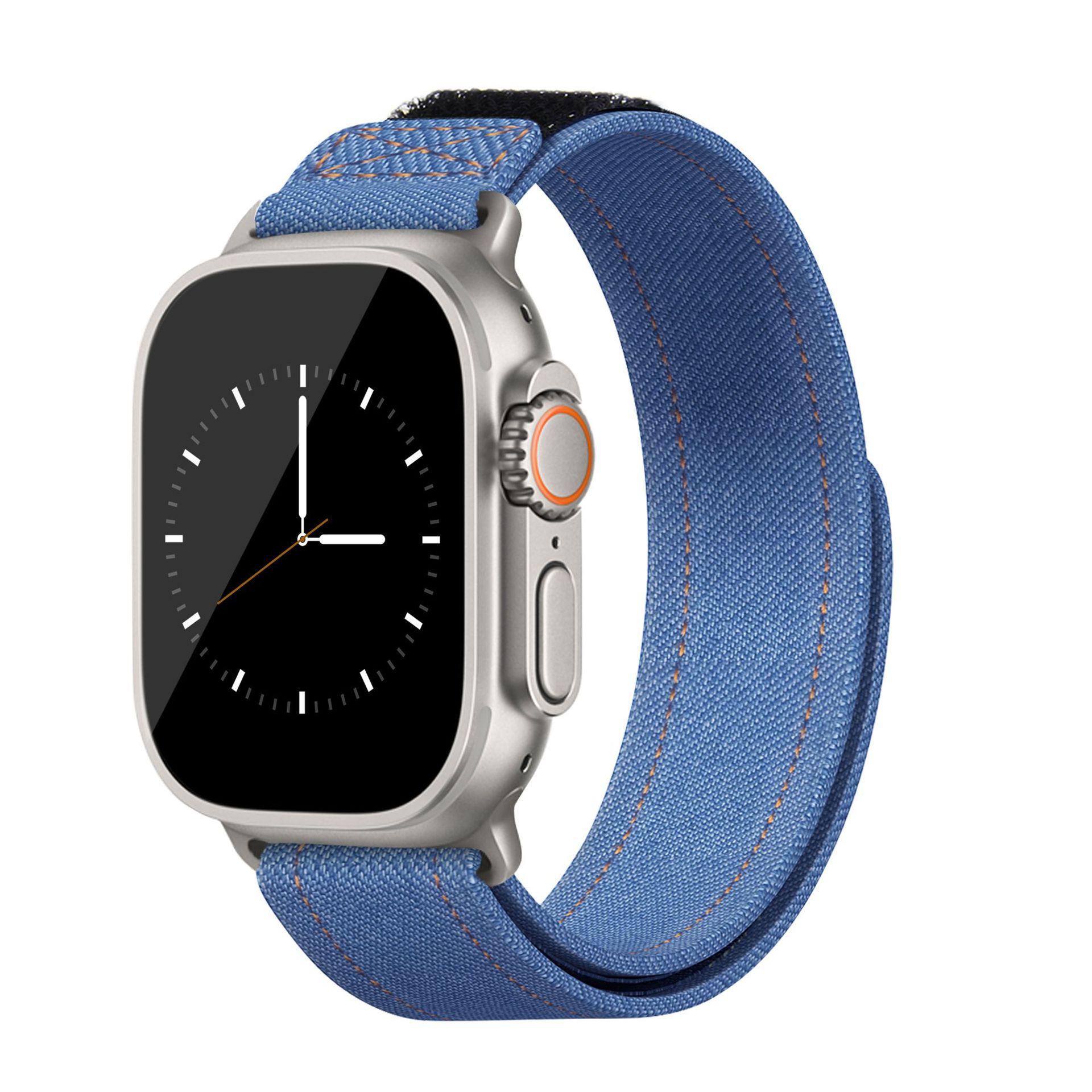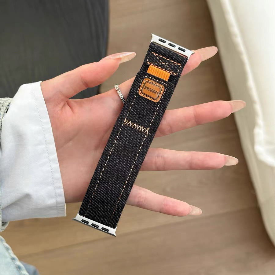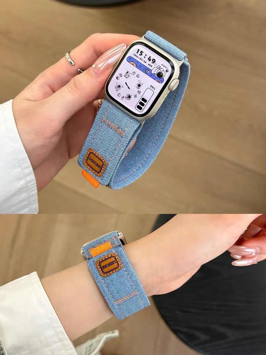 适用苹果applewatch789ultra2手表带牛仔一体编织iwatchs10表带