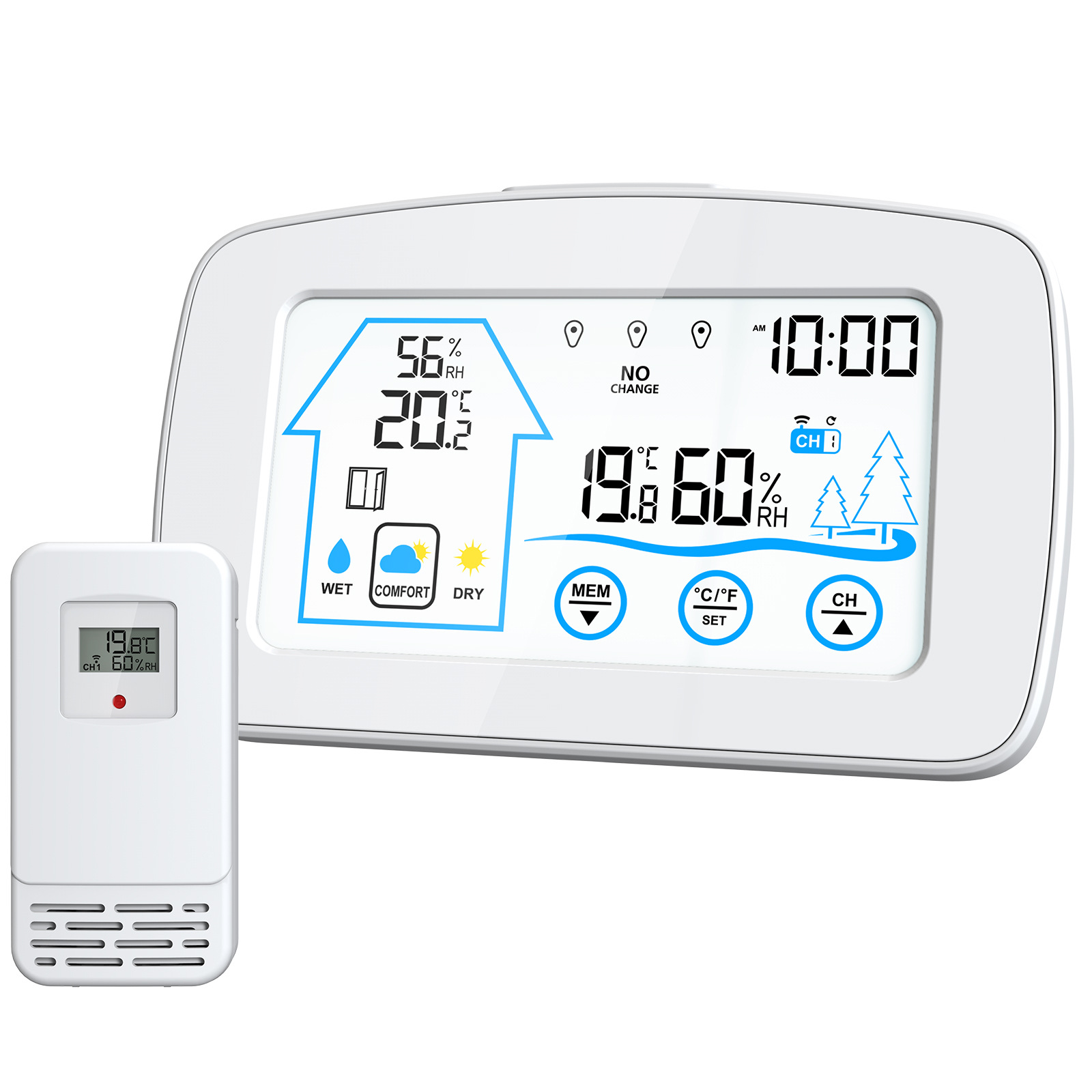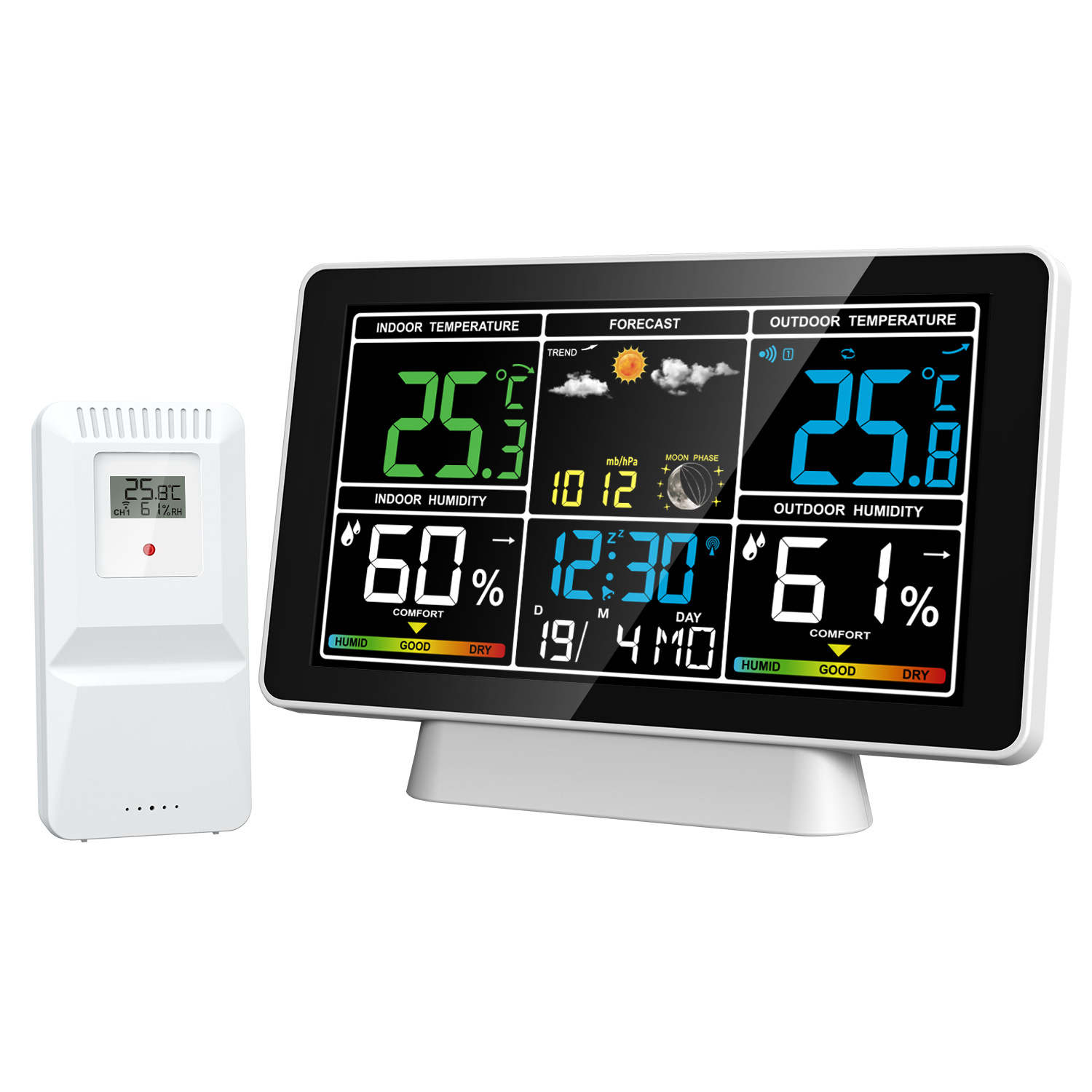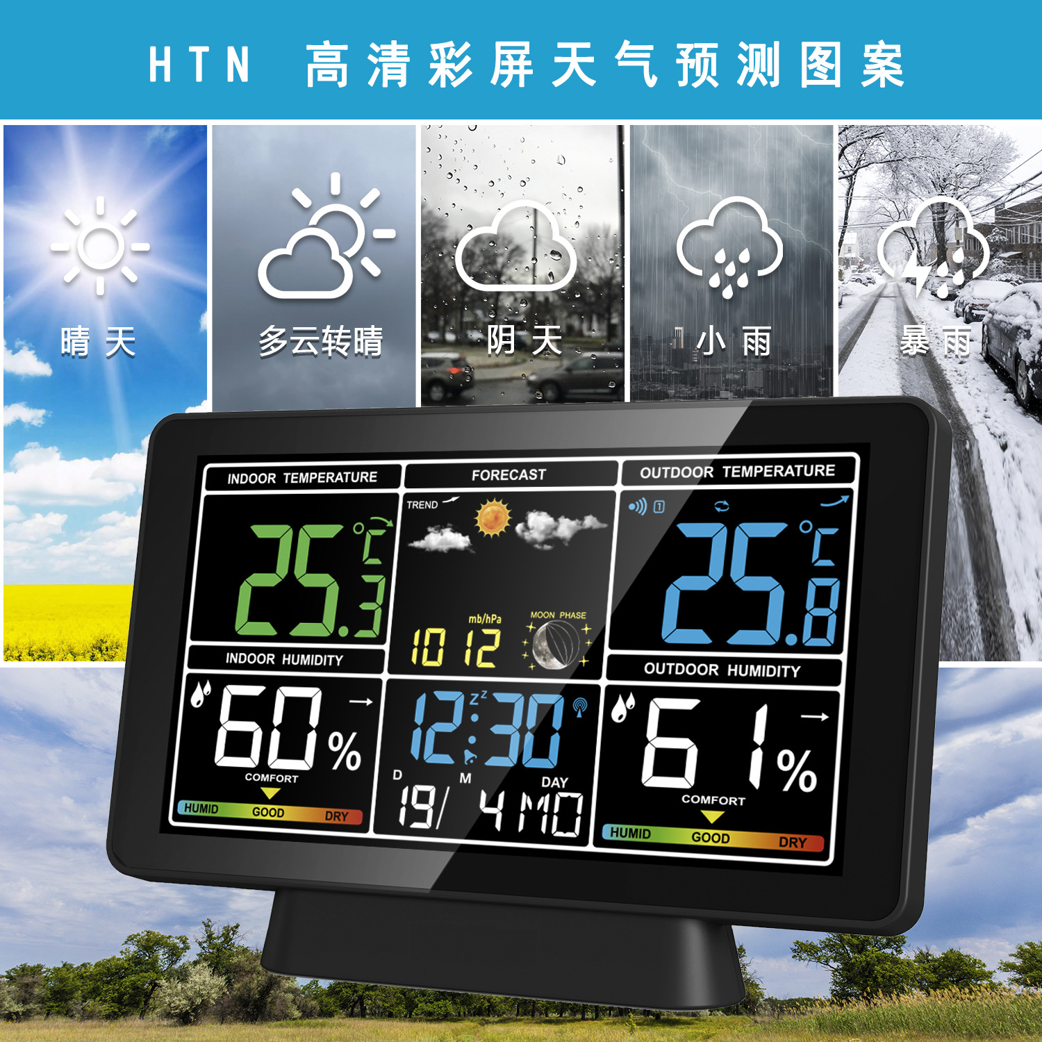 多功能彩屏天气预报电子闹钟带月相RF无线气象钟万年历电波原子钟
