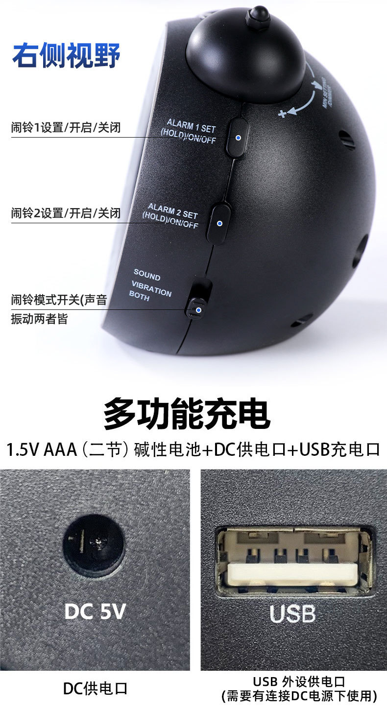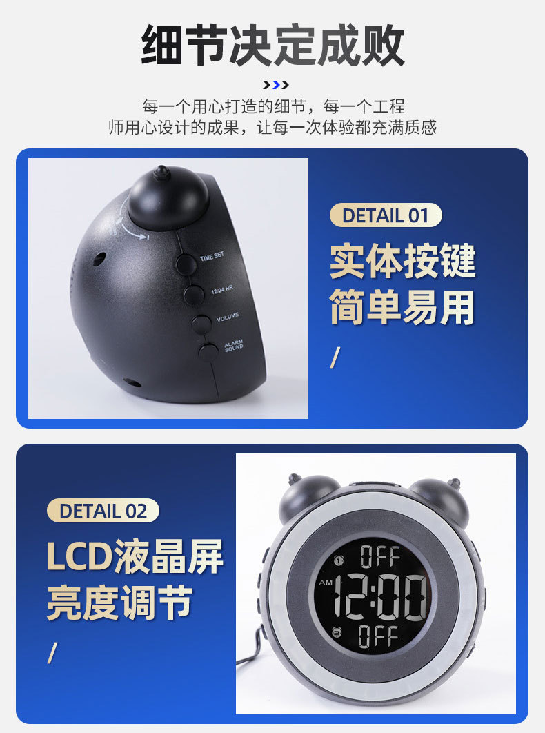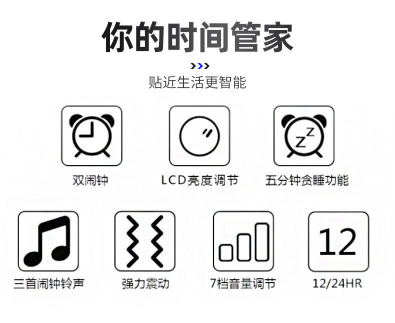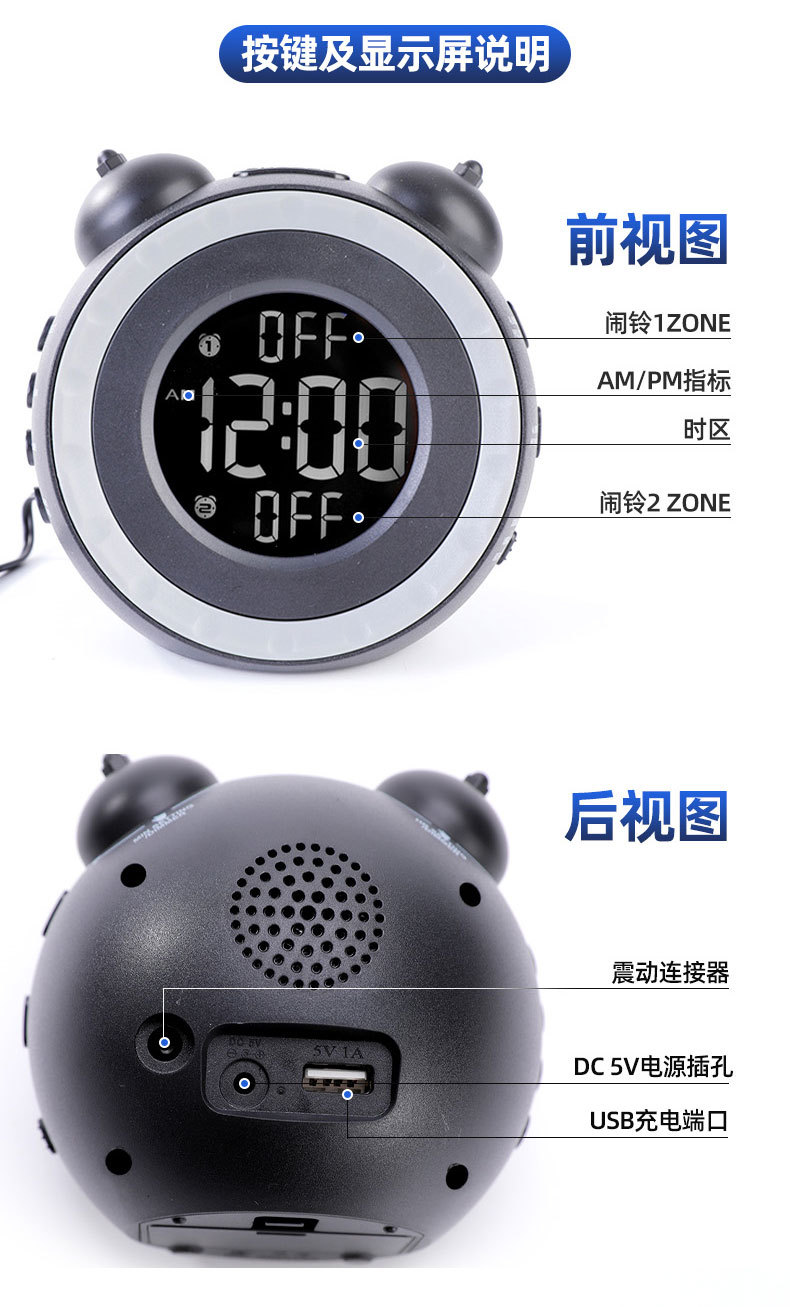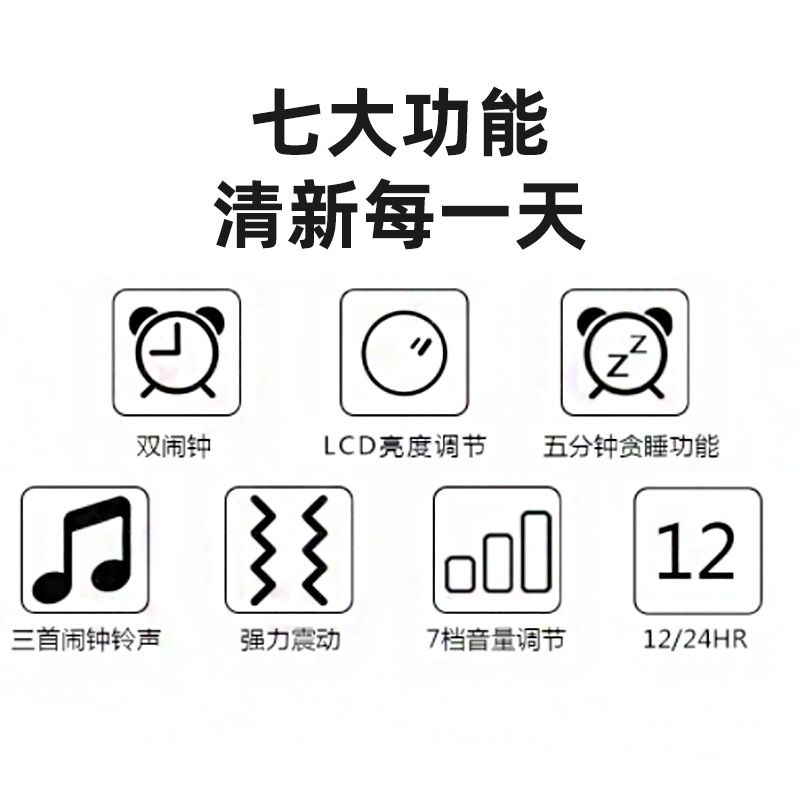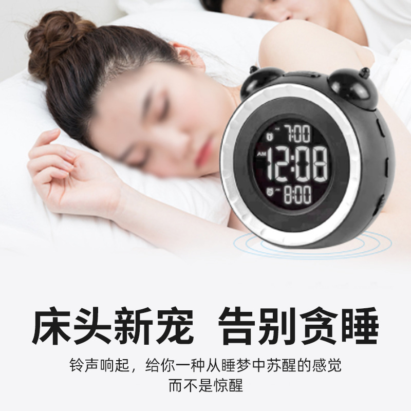 高清VA显示强力唤醒闹钟简约创意学生机械震动电子多功能钟表