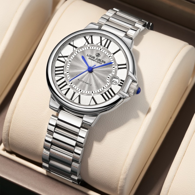 蓝气球女士机械表真皮全自动防水时尚商务手表女