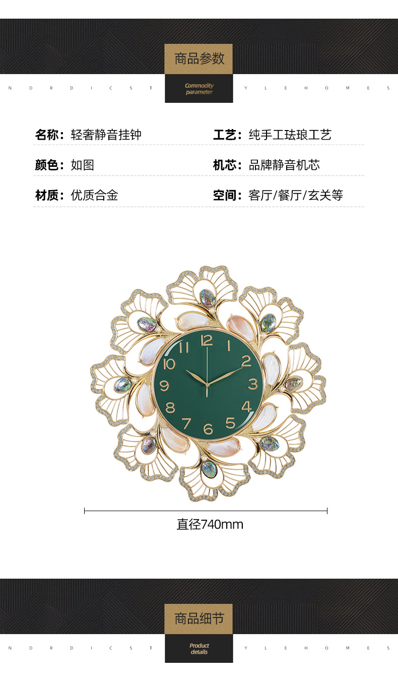 家用创意个性表盘静音机芯无噪音挂钟纯手工珐琅工艺轻奢简约挂钟