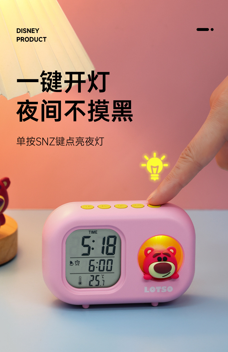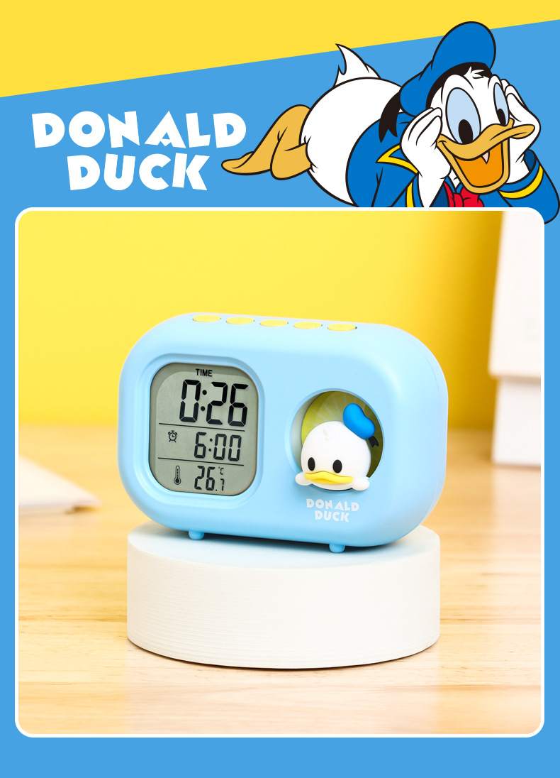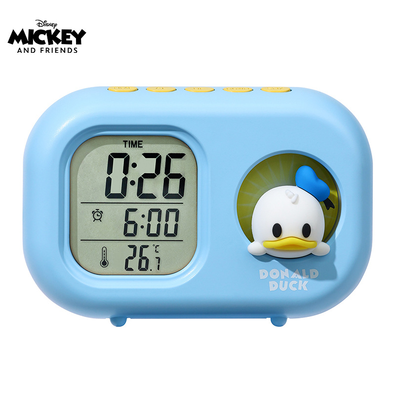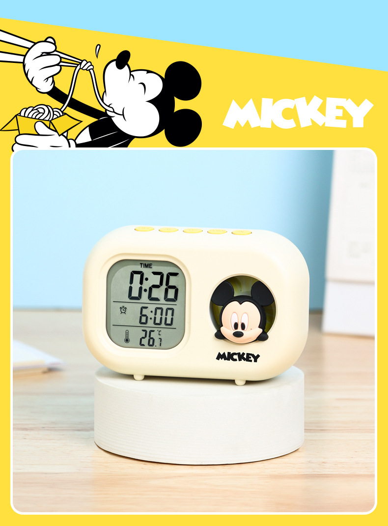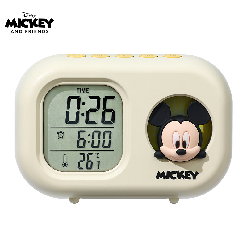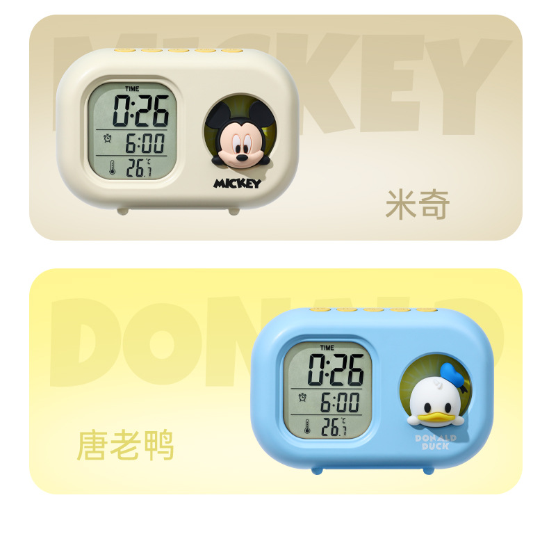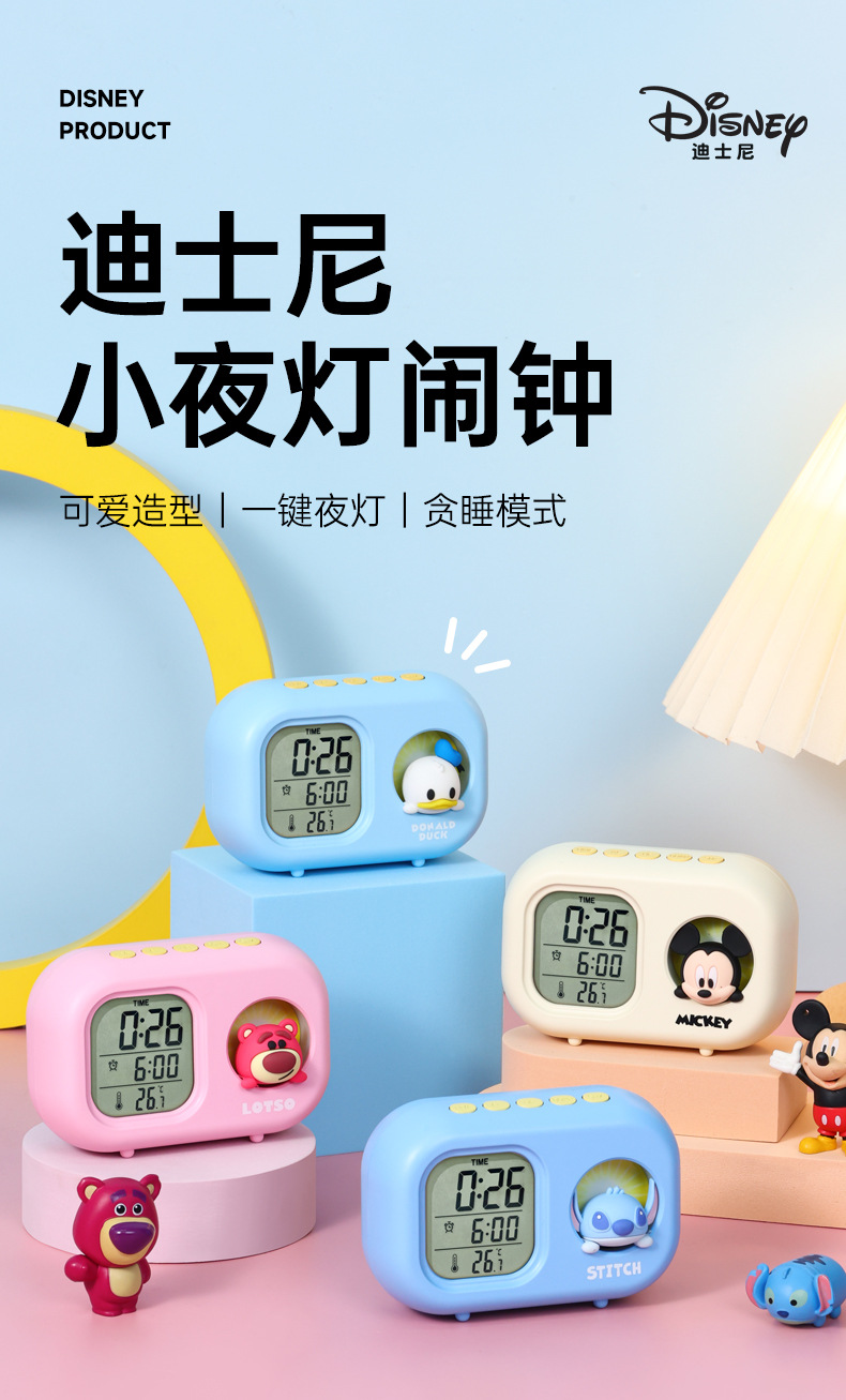 迪士尼多功能可爱闹钟创意造型学生儿童床头卧室电子钟静音小夜灯
