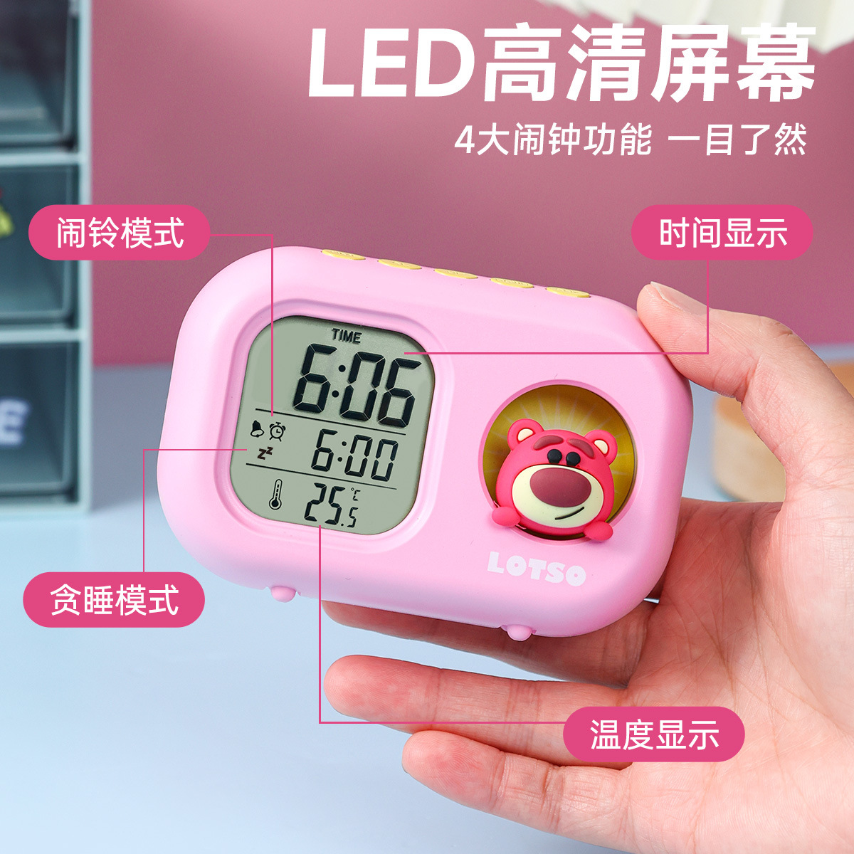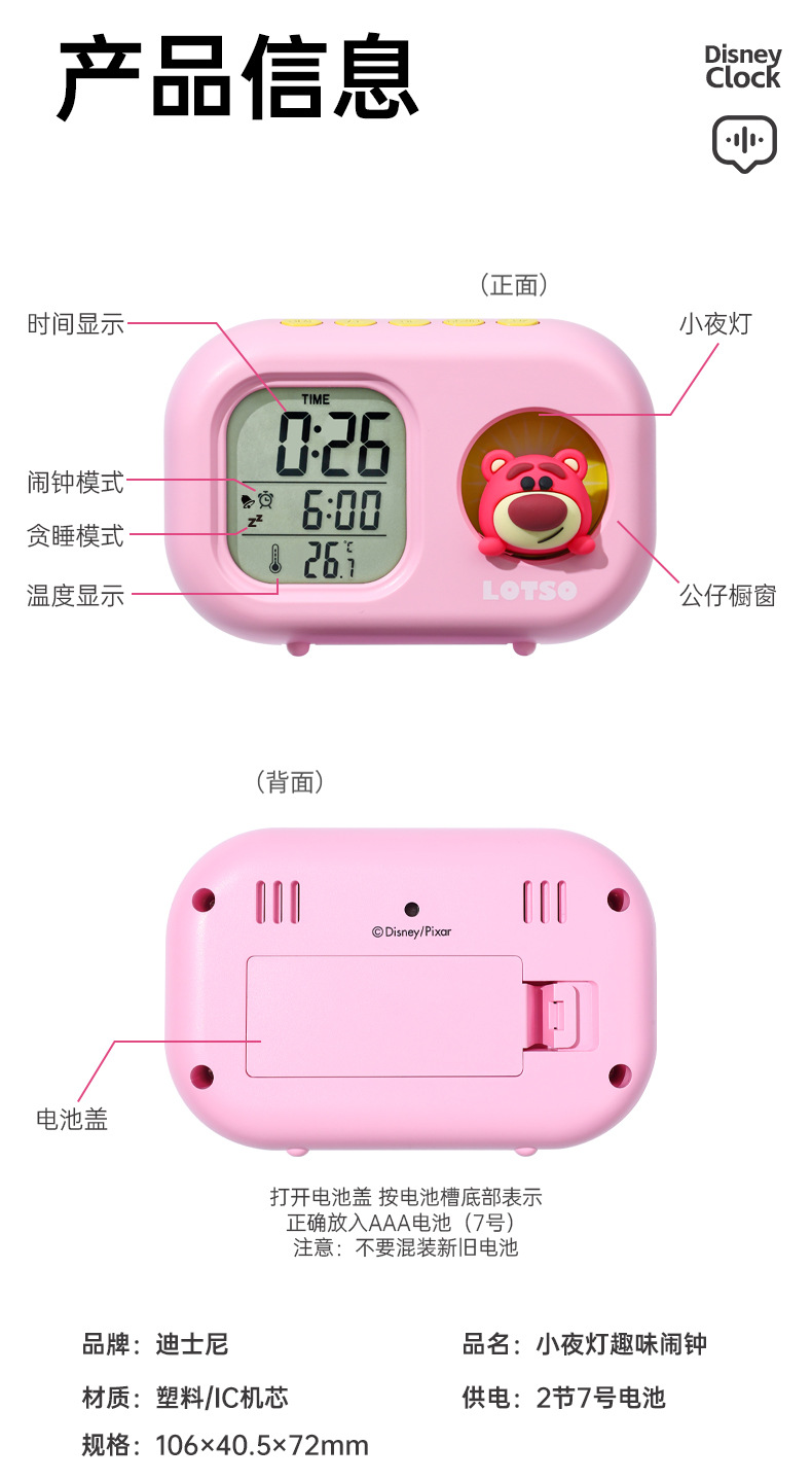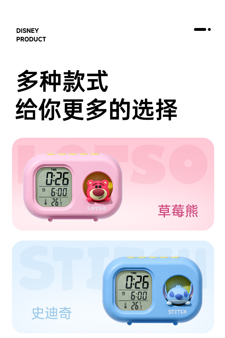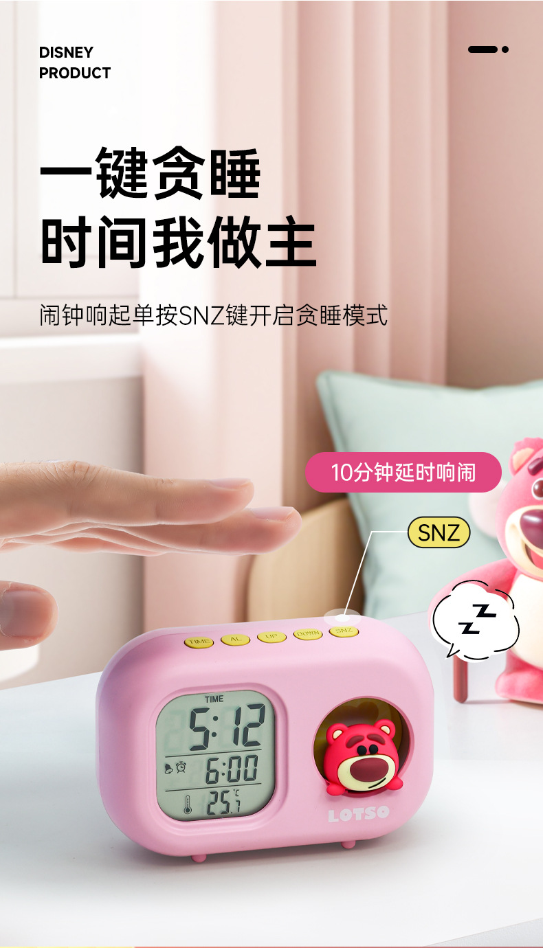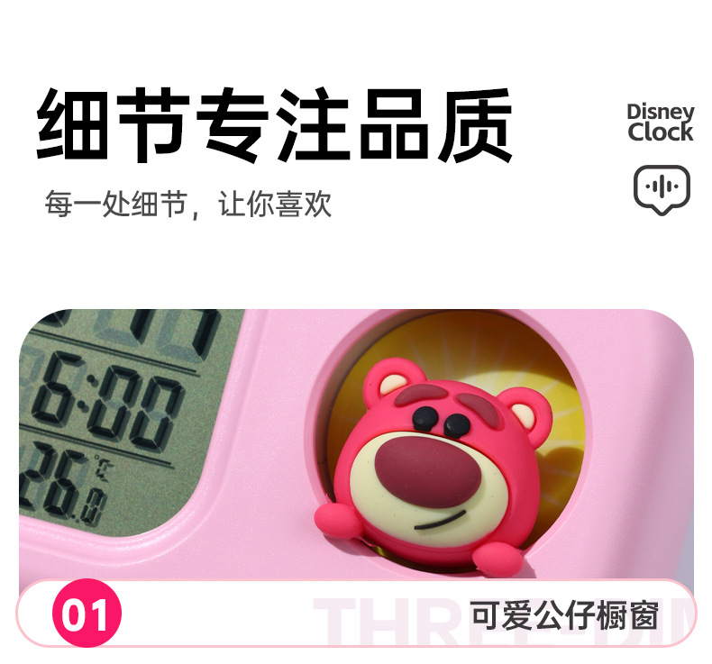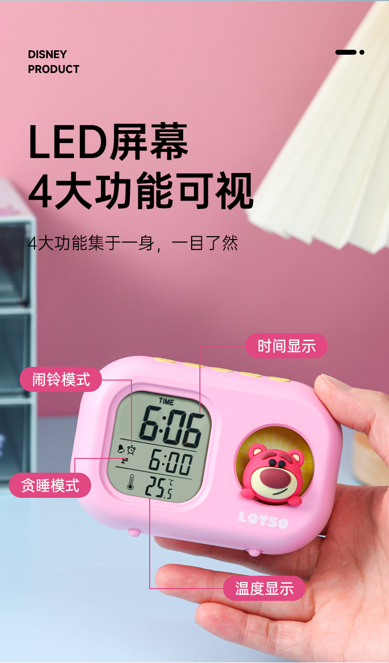 迪士尼多功能可爱闹钟创意造型学生儿童床头卧室电子钟静音小夜灯