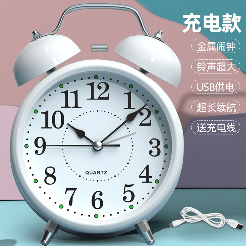 - 金属机身/大号白色【走时静音铃声超大】