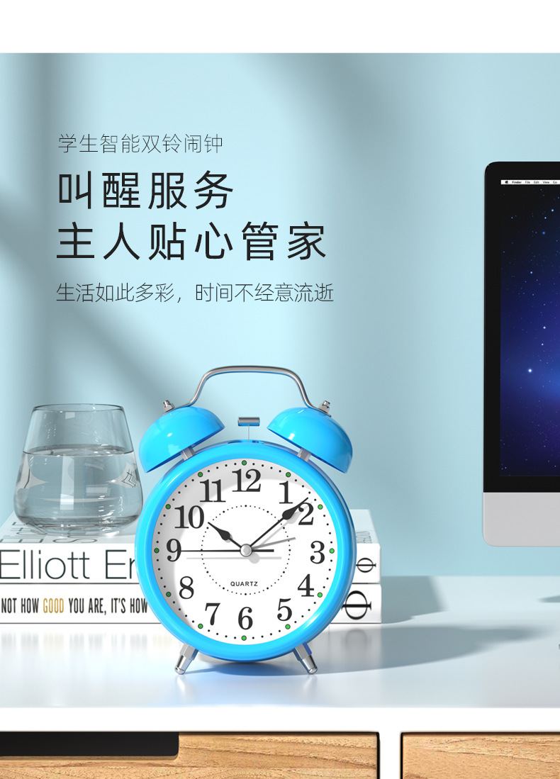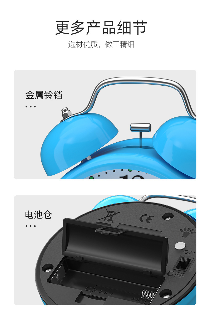 - 金属机身/小号蓝色【走时静音】【铃声超大】