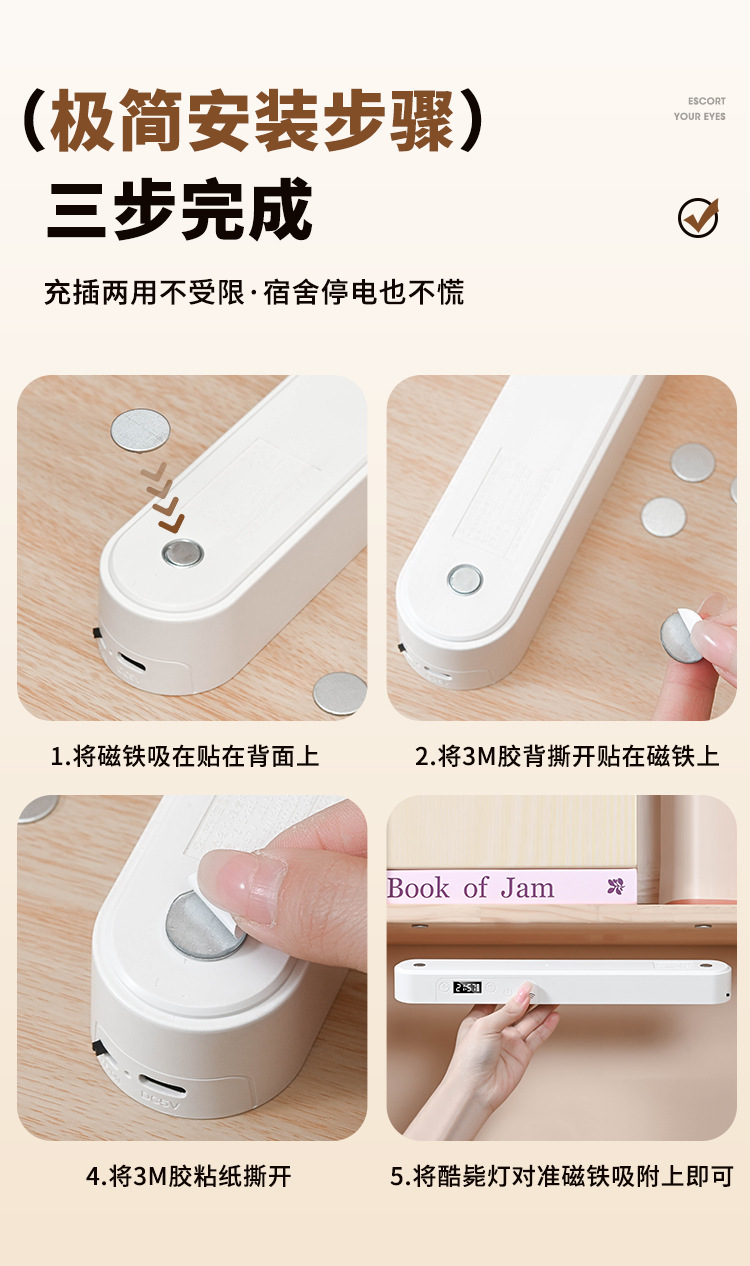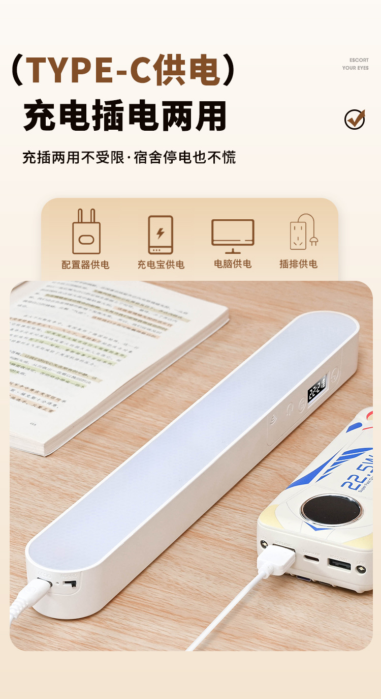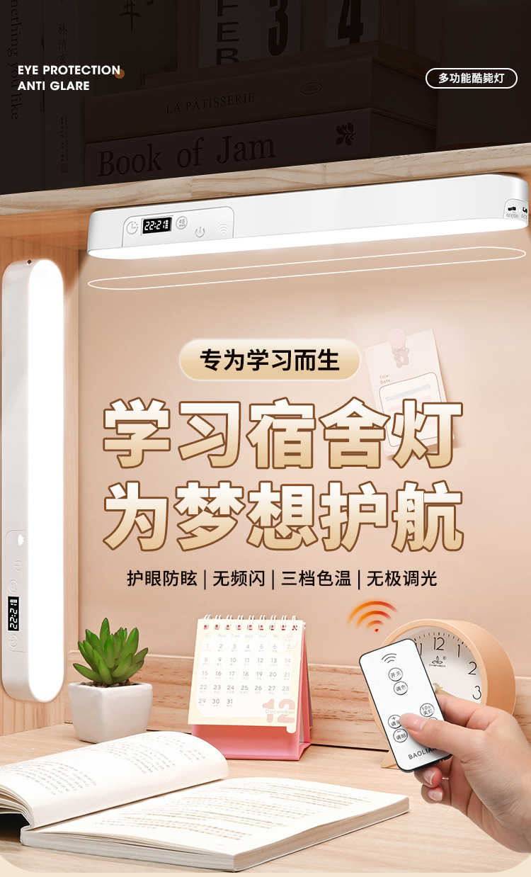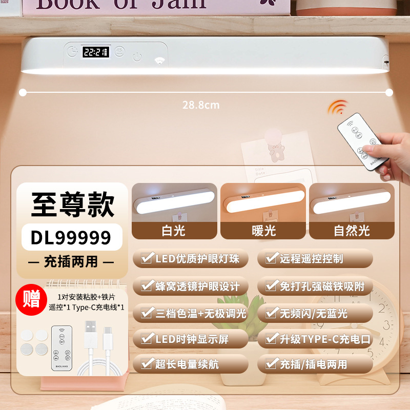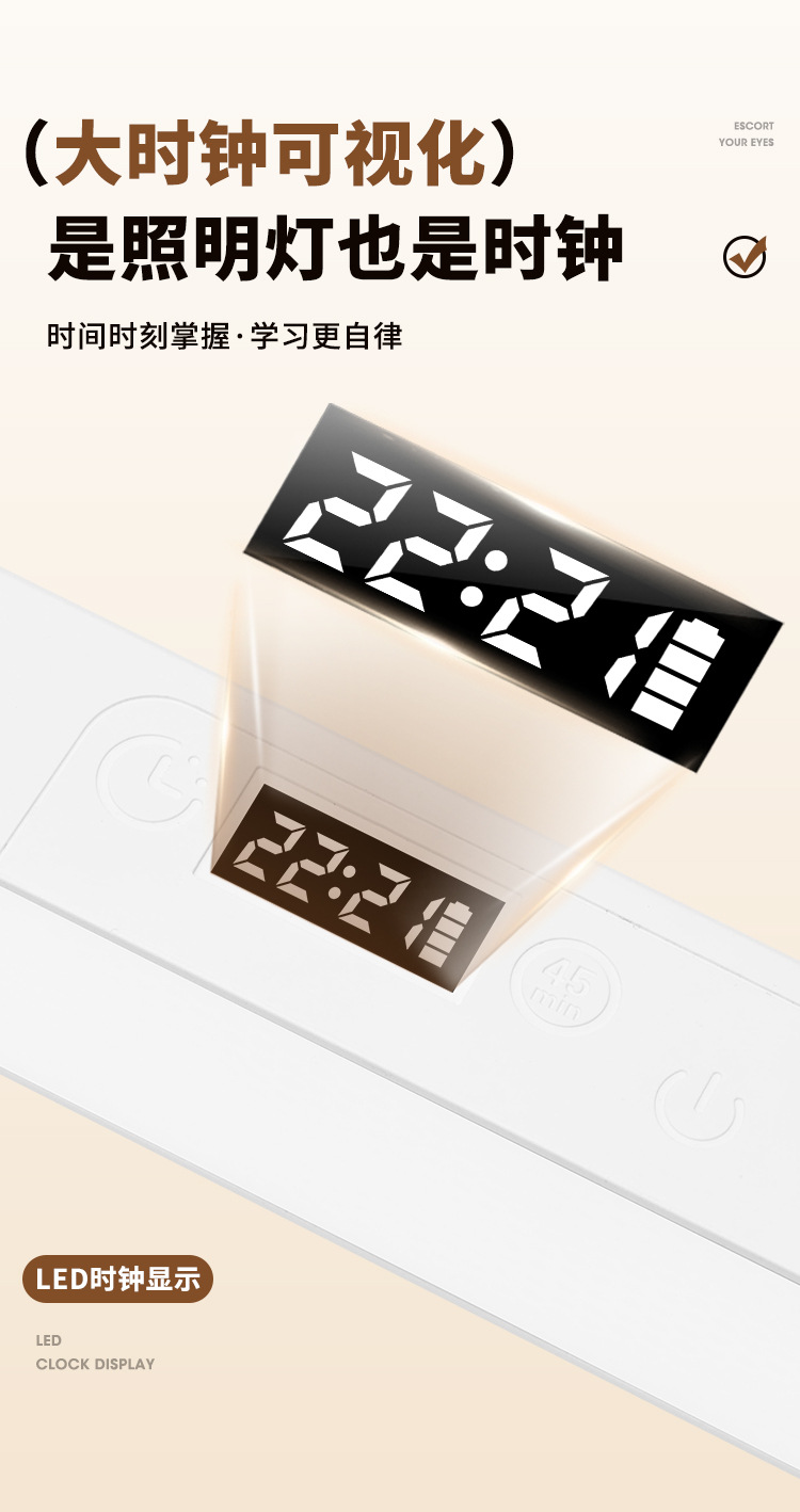led护眼时钟台灯学生宿舍寝室学习专用磁吸酷毙灯书桌充电床头灯