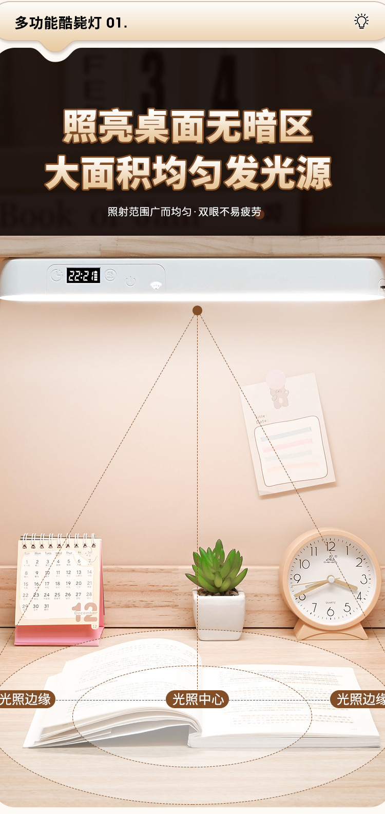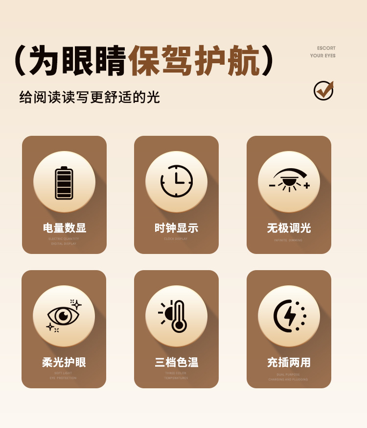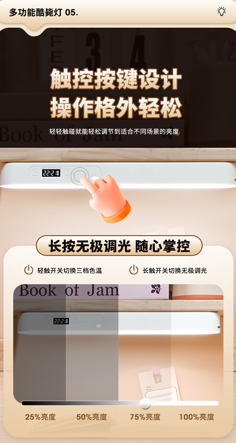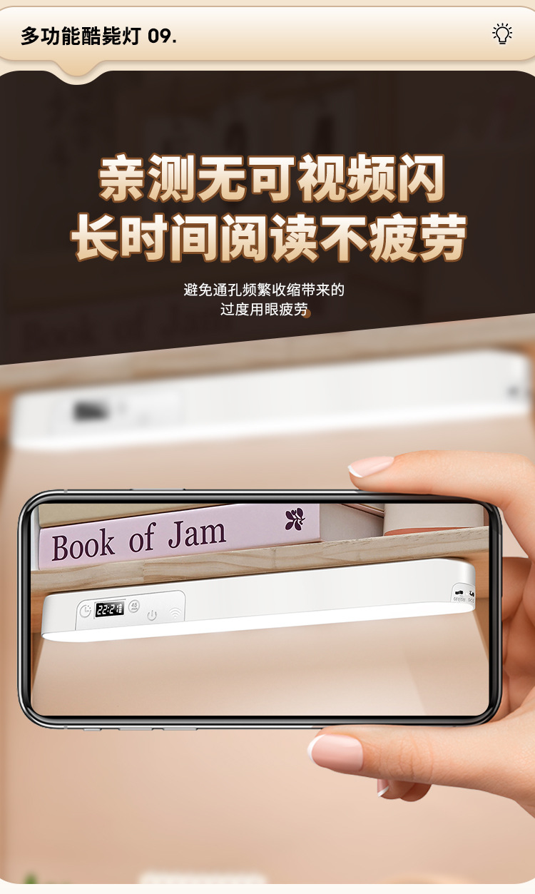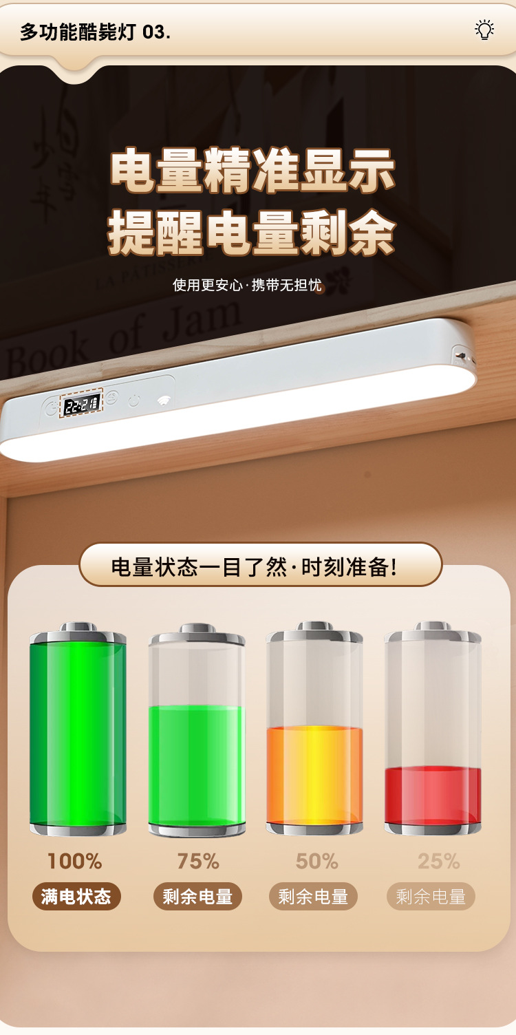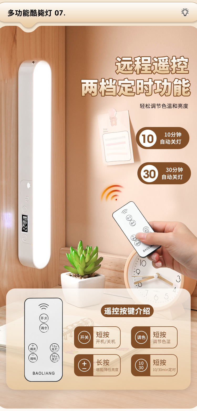 内置充电电池【带显示时钟功能+带遥控】三色温调节