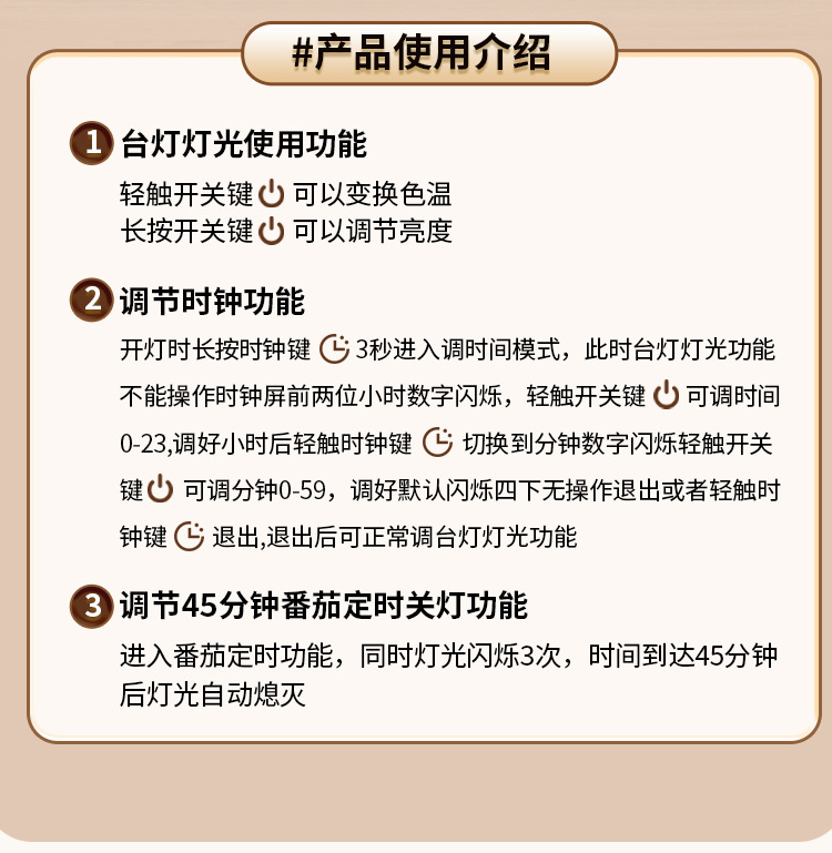内置充电电池【不带显示时钟功能】三色温调节