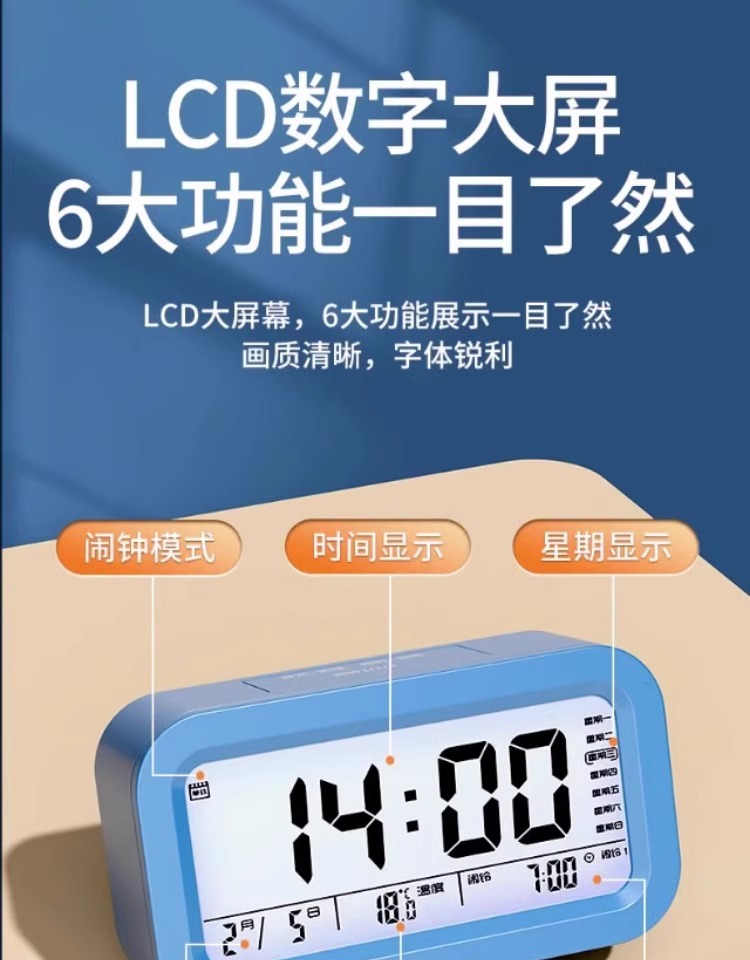 闹钟学生专用起床智能闹钟桌面电子表时钟强力叫醒闹铃