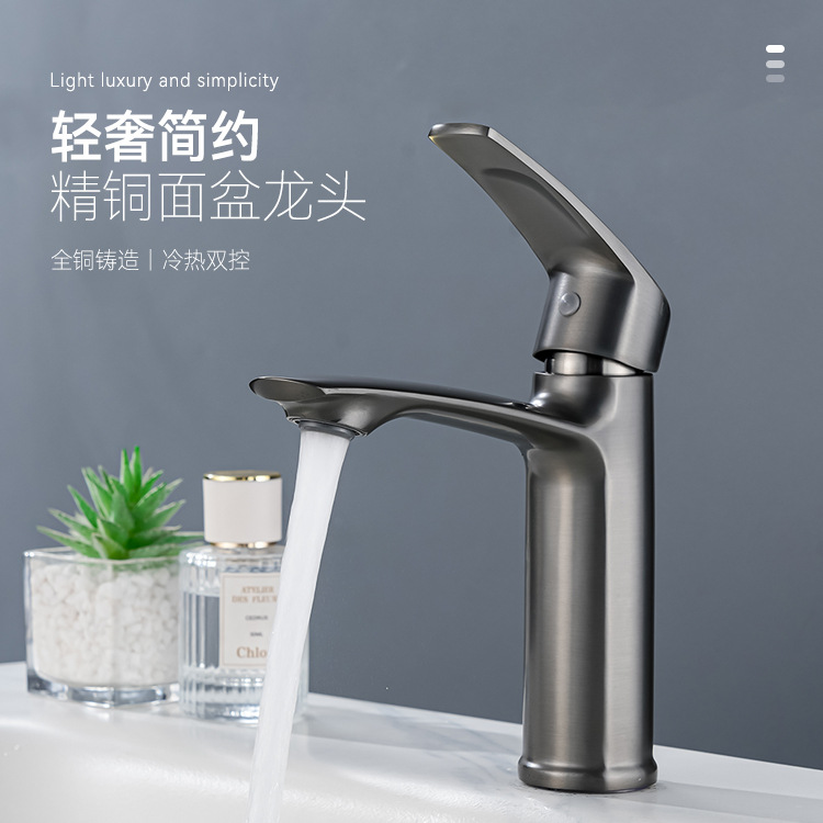全铜芯面盆水龙头枪灰色卫生间洗手盆家用新款卫浴水龙头冷热轻奢