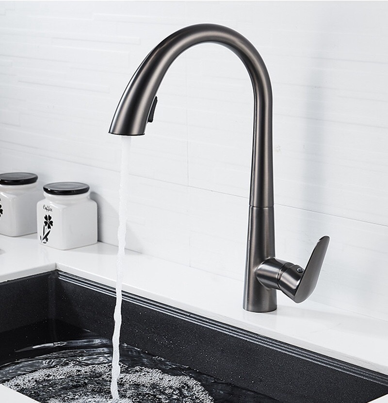 铜厨房枪灰色抽拉式水龙头家用万向伸缩洗菜洗碗池龙头