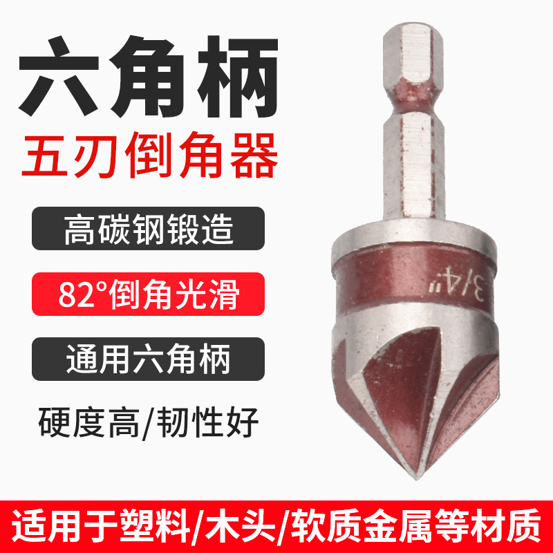 红色英制倒角器套装六角柄倒角刀电钻打孔去毛刺木工工具