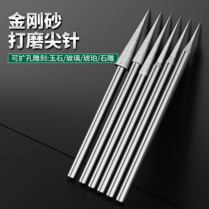 金刚砂磨针加长玉石打磨抛光工具文玩翡翠雕刻珍珠扩孔细砂尖磨头