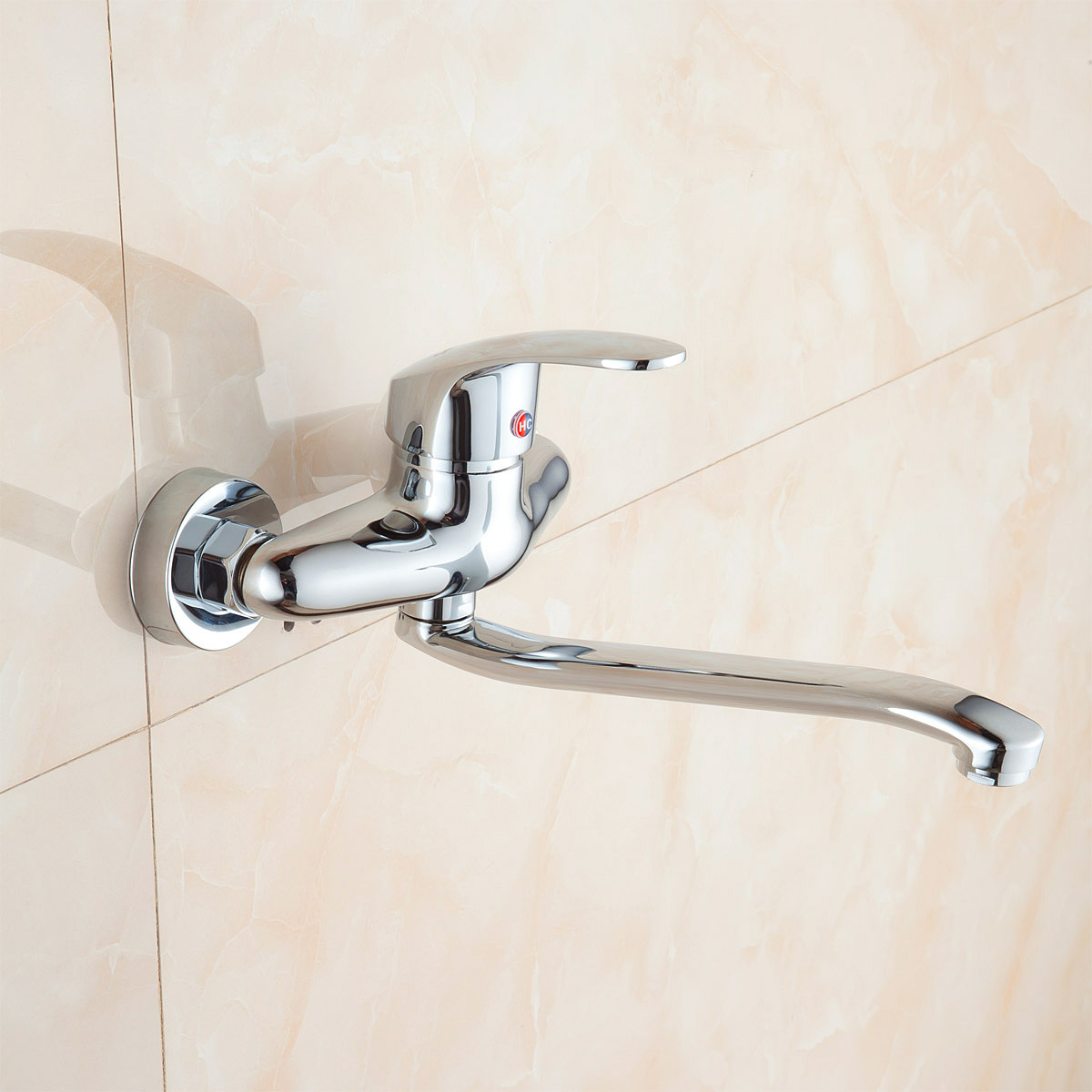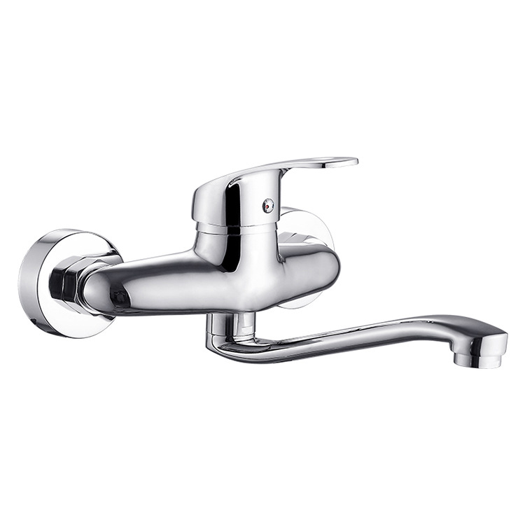 铜厨房入墙式洗菜盆水龙头双孔可旋转冷热长嘴水龙头