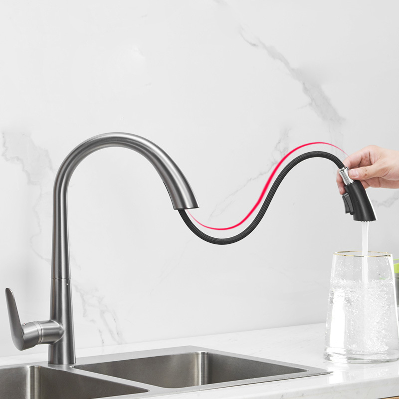 铜厨房枪灰色抽拉式水龙头家用万向伸缩洗菜洗碗池龙头