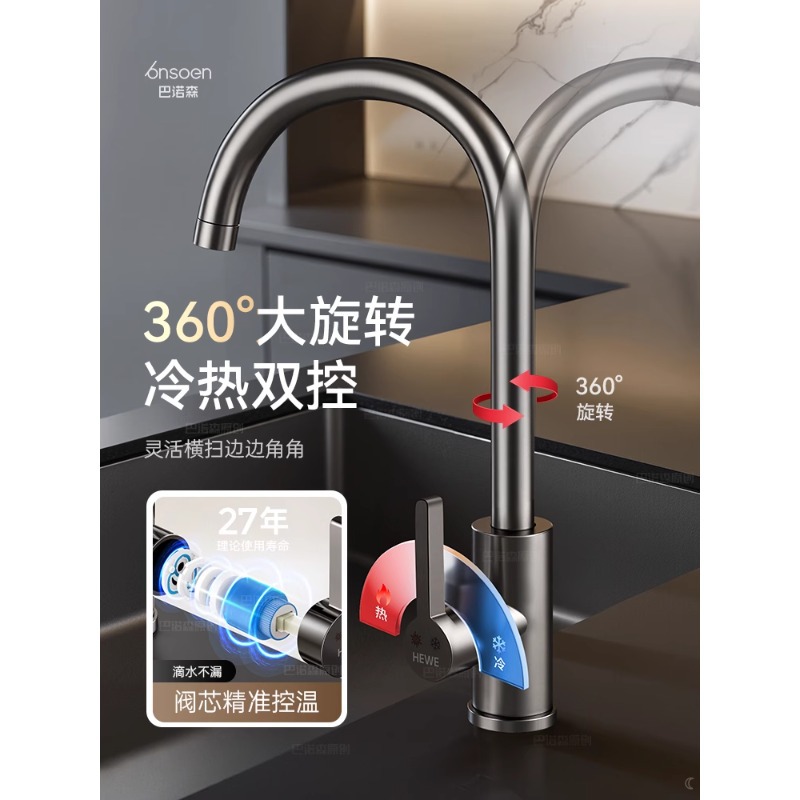 厨房水龙头冷热二合一洗菜盆洗碗池水槽防溅万向360度可旋转两用