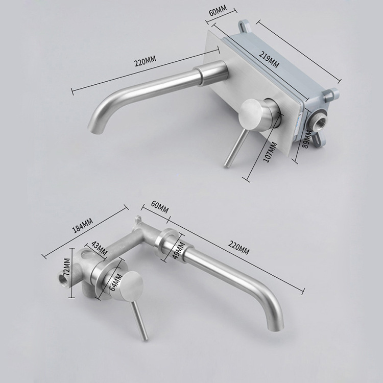 304不锈钢暗藏冷热入墙台盆水龙头挂墙墙出水面盆嵌入式暗装龙头