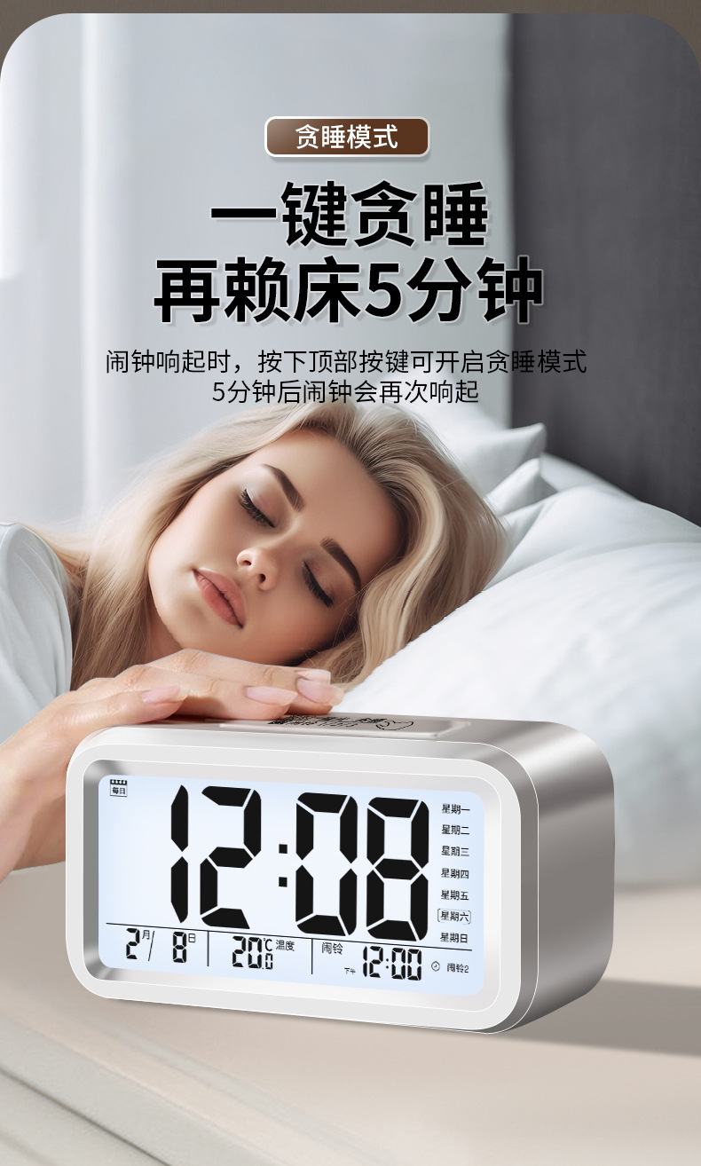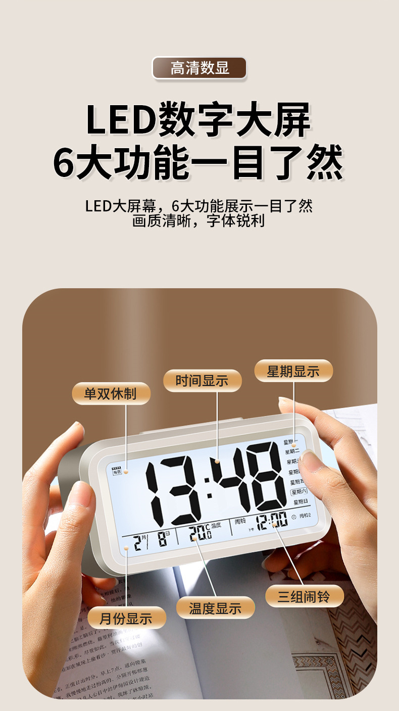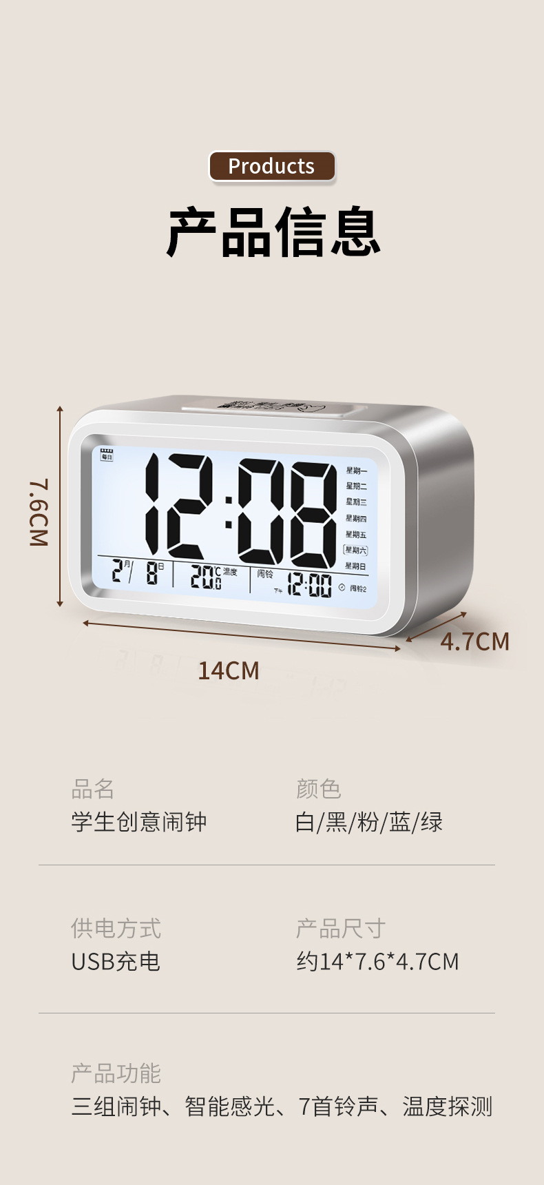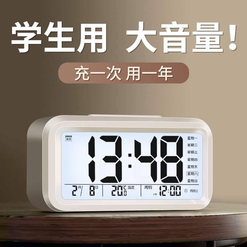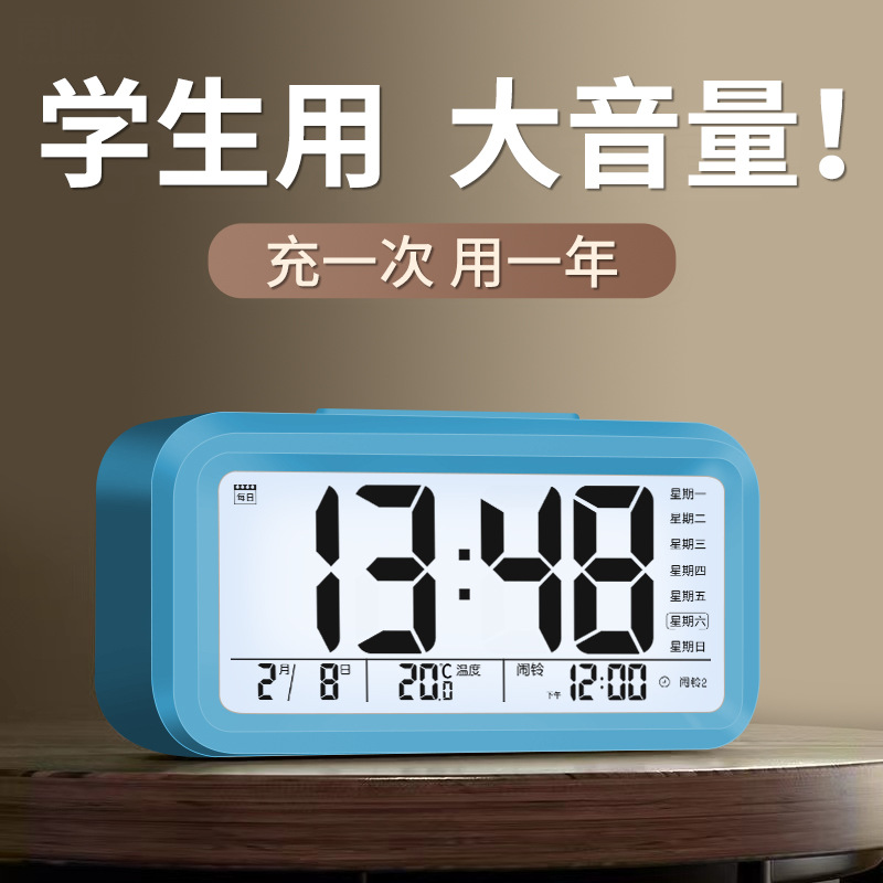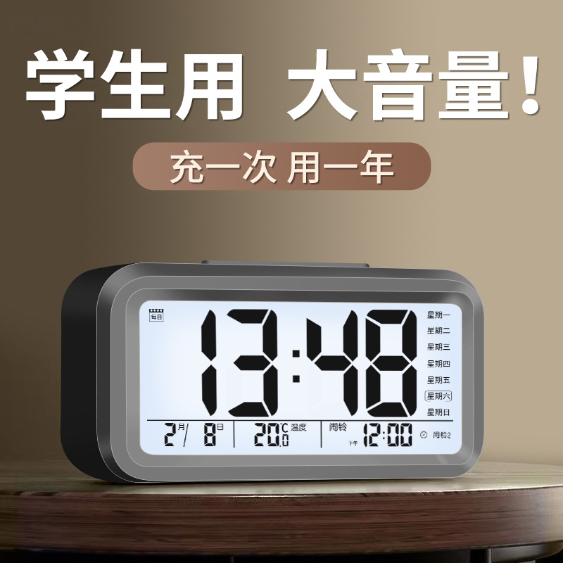 闹钟学生起床神器多功能智能电子时钟儿童专用充电款