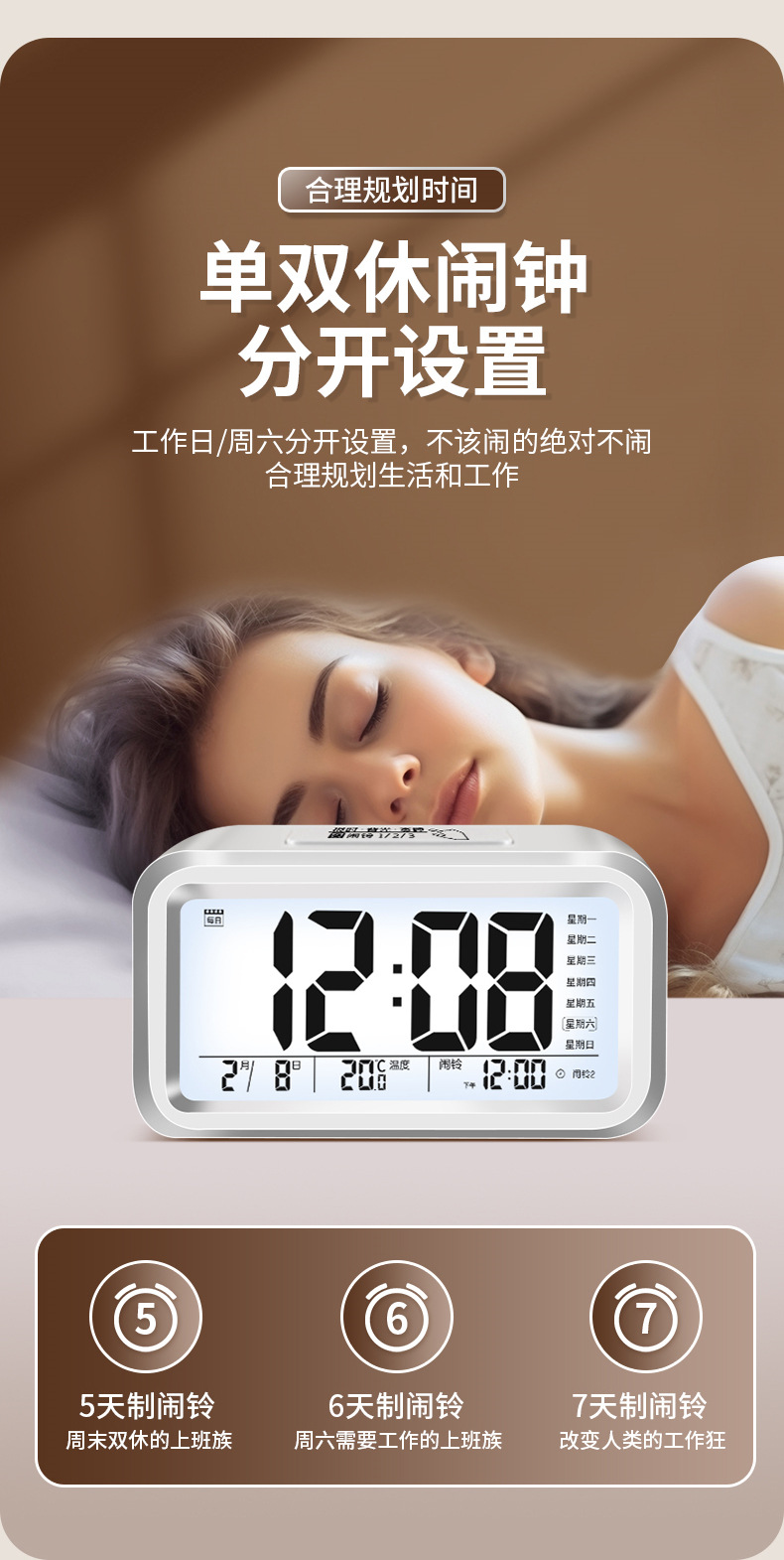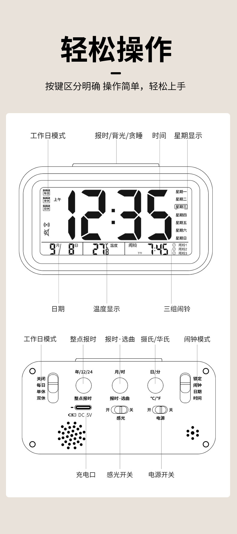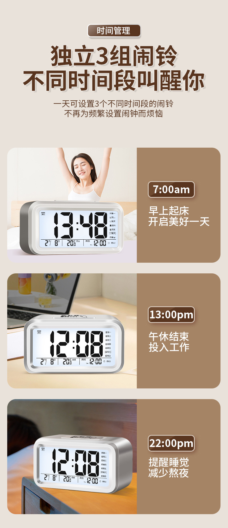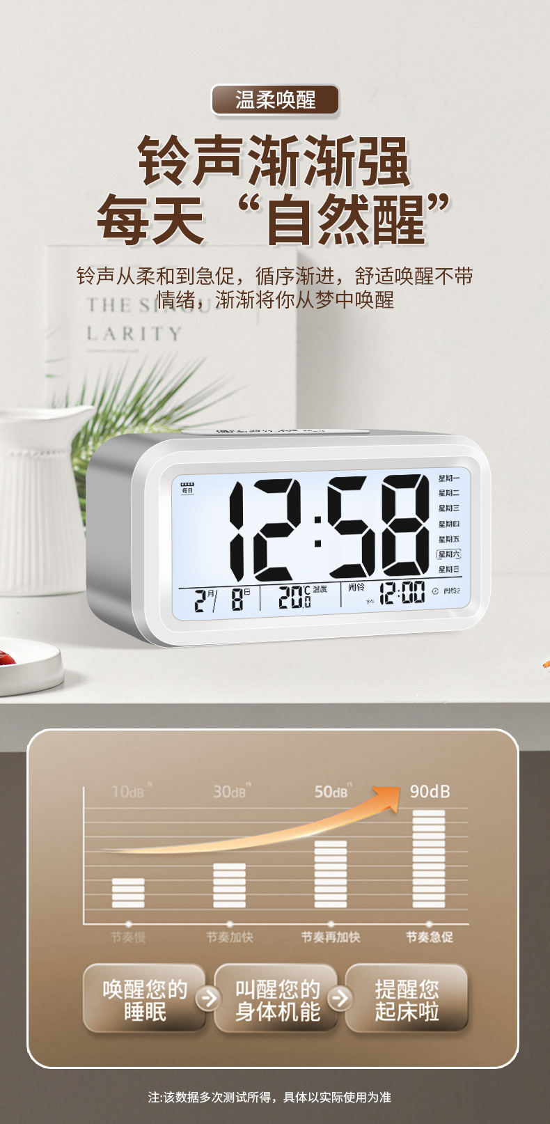 闹钟学生起床神器多功能智能电子时钟儿童专用充电款
