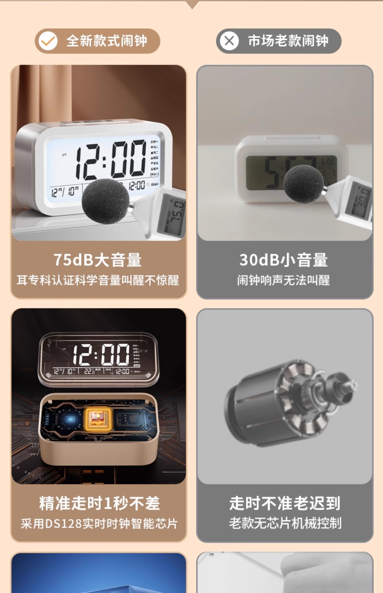 闹钟学生专用起床神器多功能智能电子时钟儿童钟表男女孩强力推荐