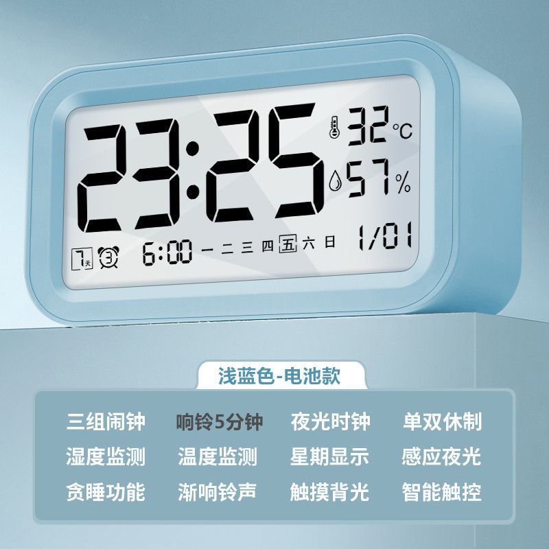 - 蓝色-智能电池款【三组闹钟+6大功能】