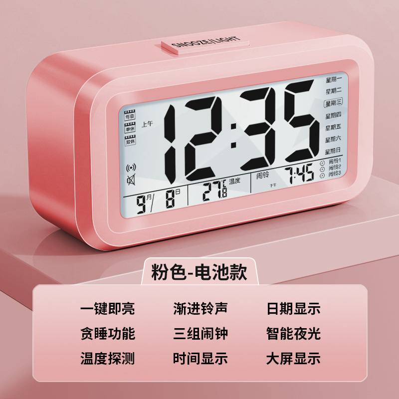 - 粉色-智能电池款【三组闹钟+6大功能】