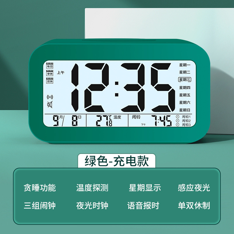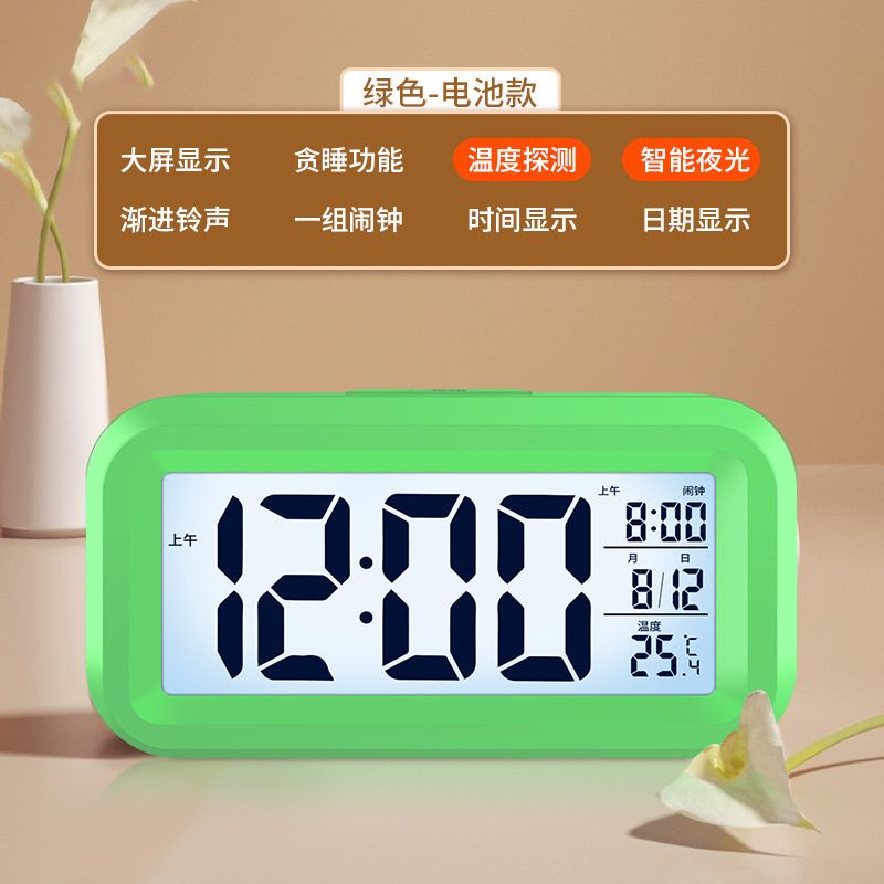 - 绿色-智能电池款【三组闹钟+6大功能】