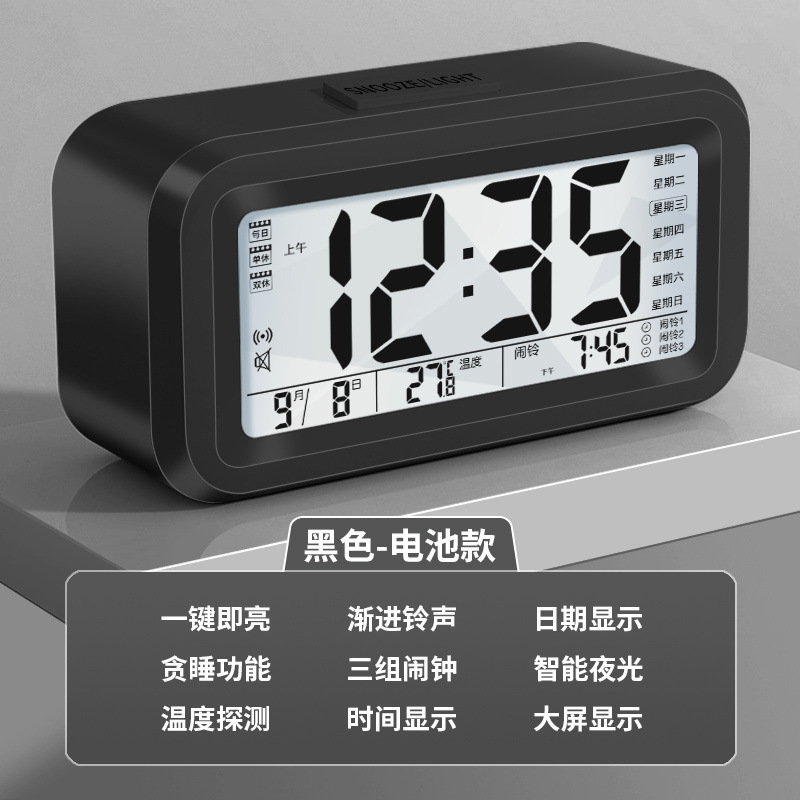 - 黑色-智能电池款【三组闹钟+6大功能】