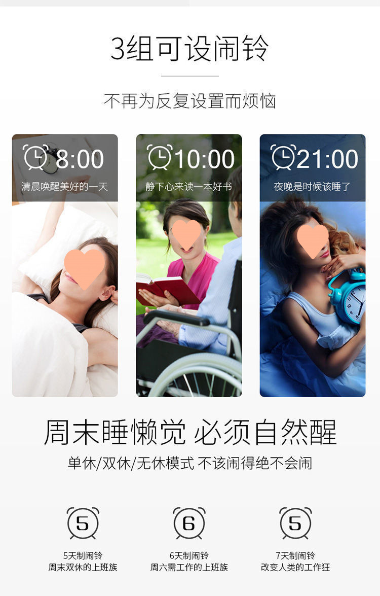 - 白色-温湿度款【七大功能+大音量+单双休】