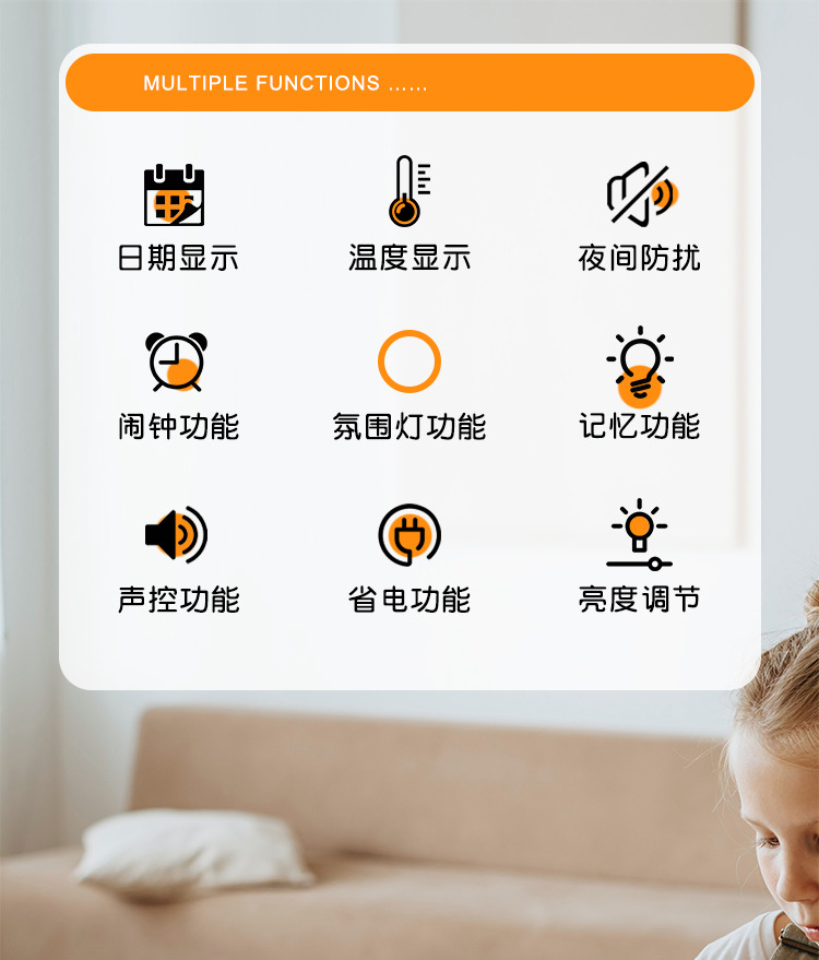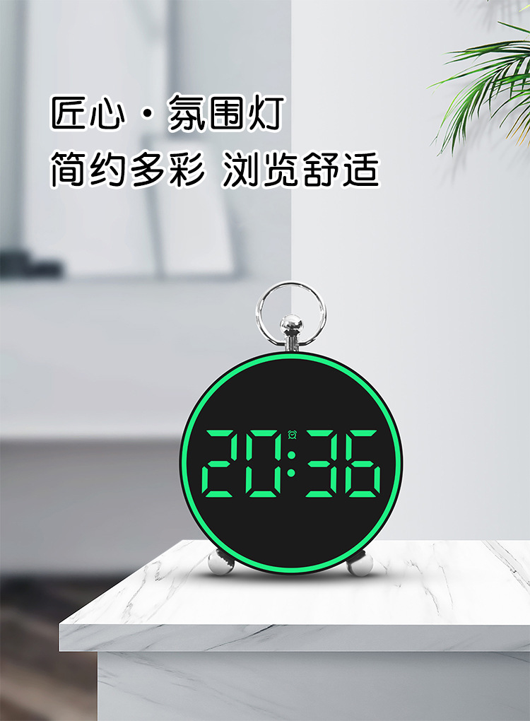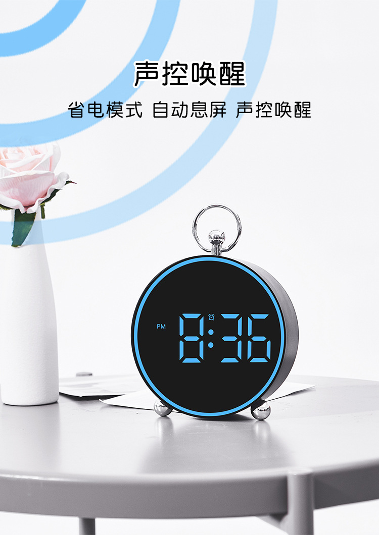 新创意闹钟简约电子钟LED时钟家居床头钟表温度钟表塑料时钟8025