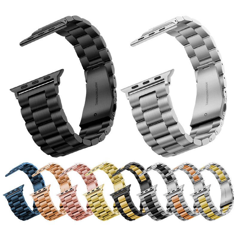 适用苹果手表带三珠不锈钢iwatch表带applewatch8/SE三星华为gt