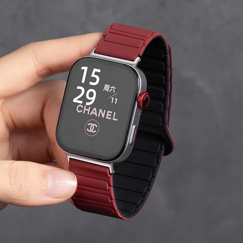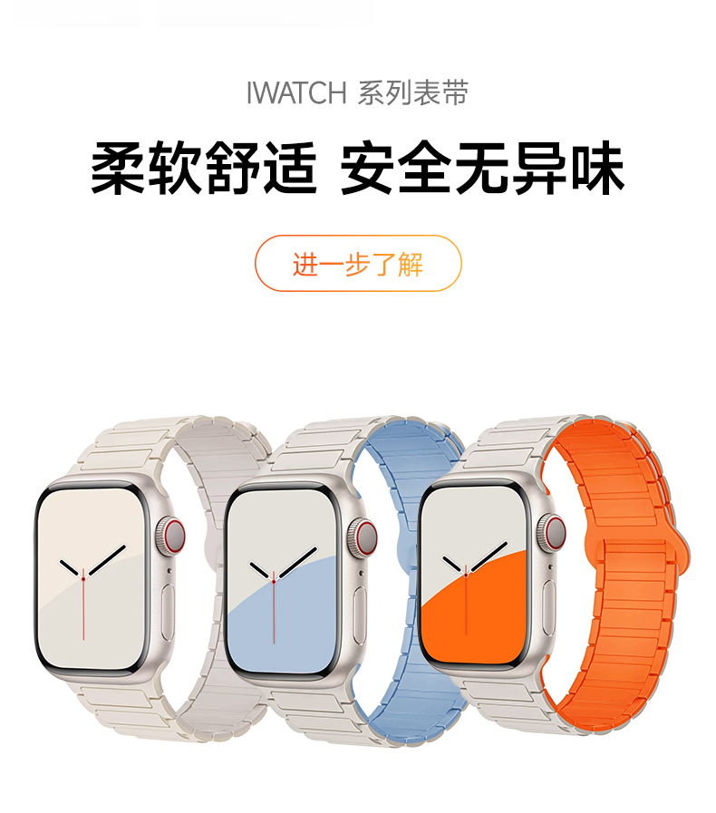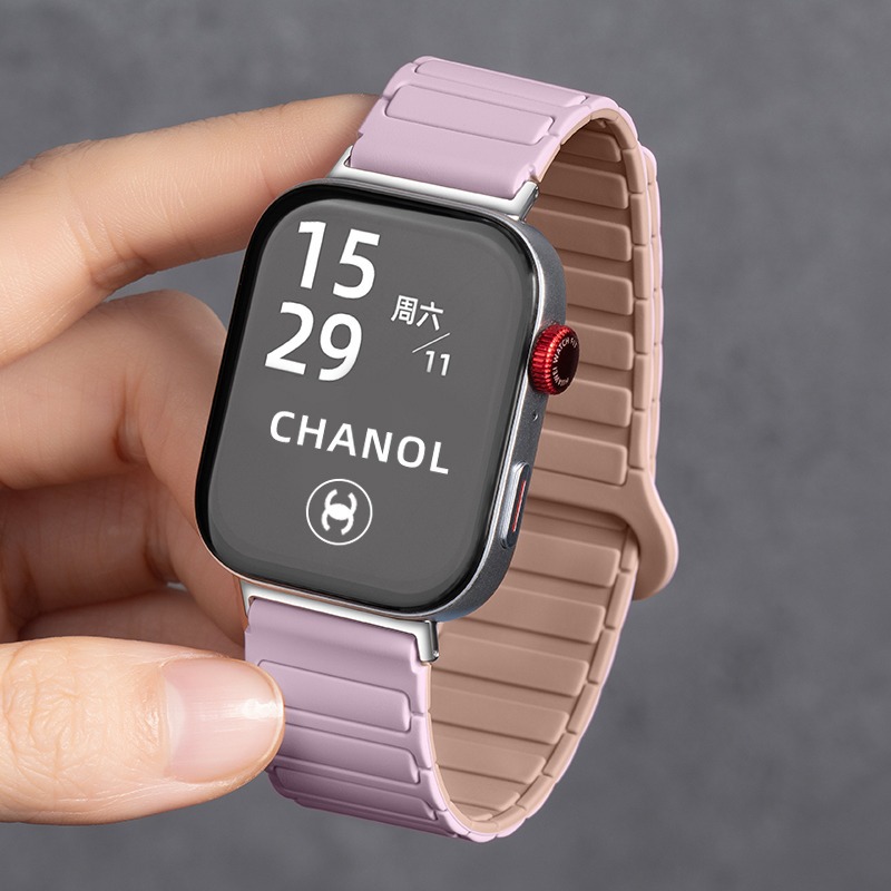 适用苹果iwatchS1110手表带appleUltra3SE404642mm硅胶磁吸
