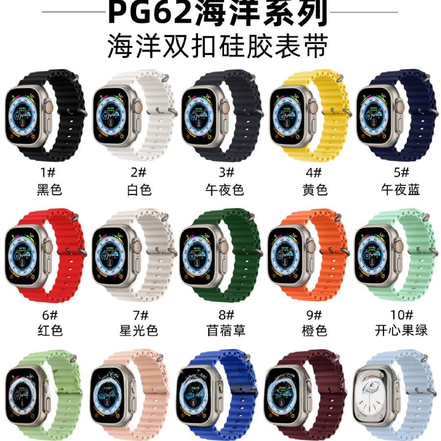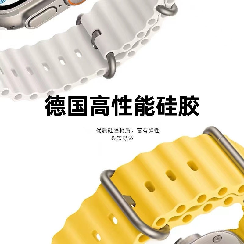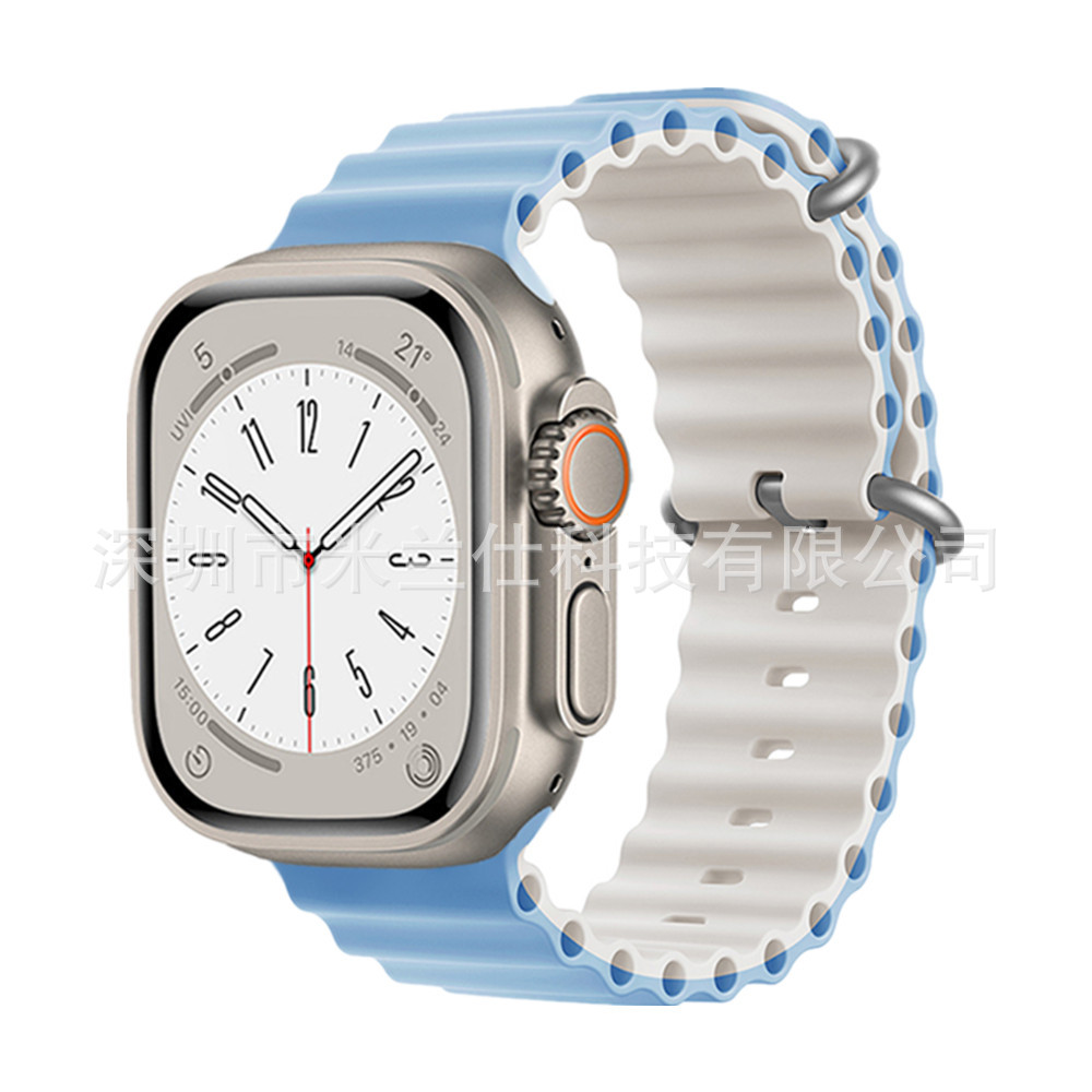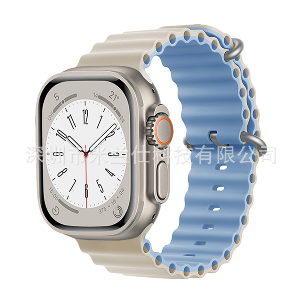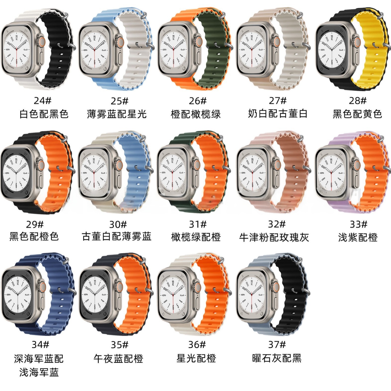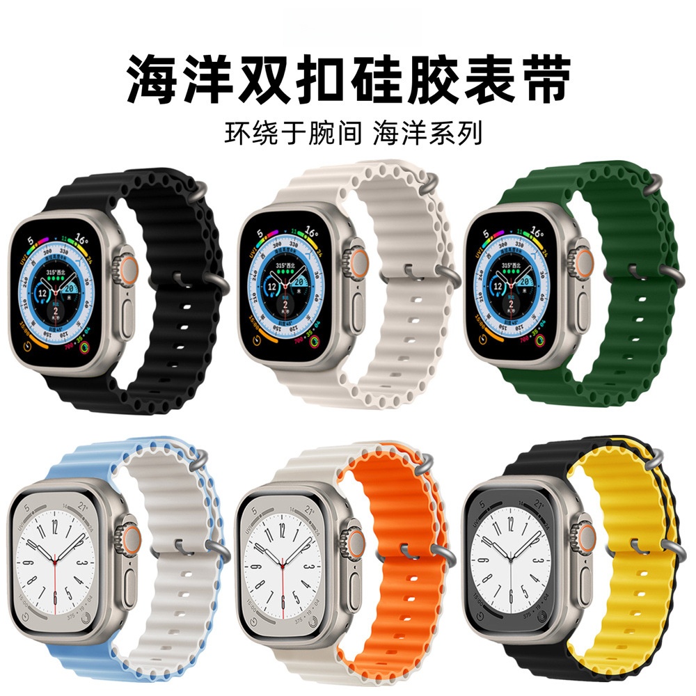 适用applewatch苹果iwatch56789SE海洋s9双扣Ultra2硅胶表带
