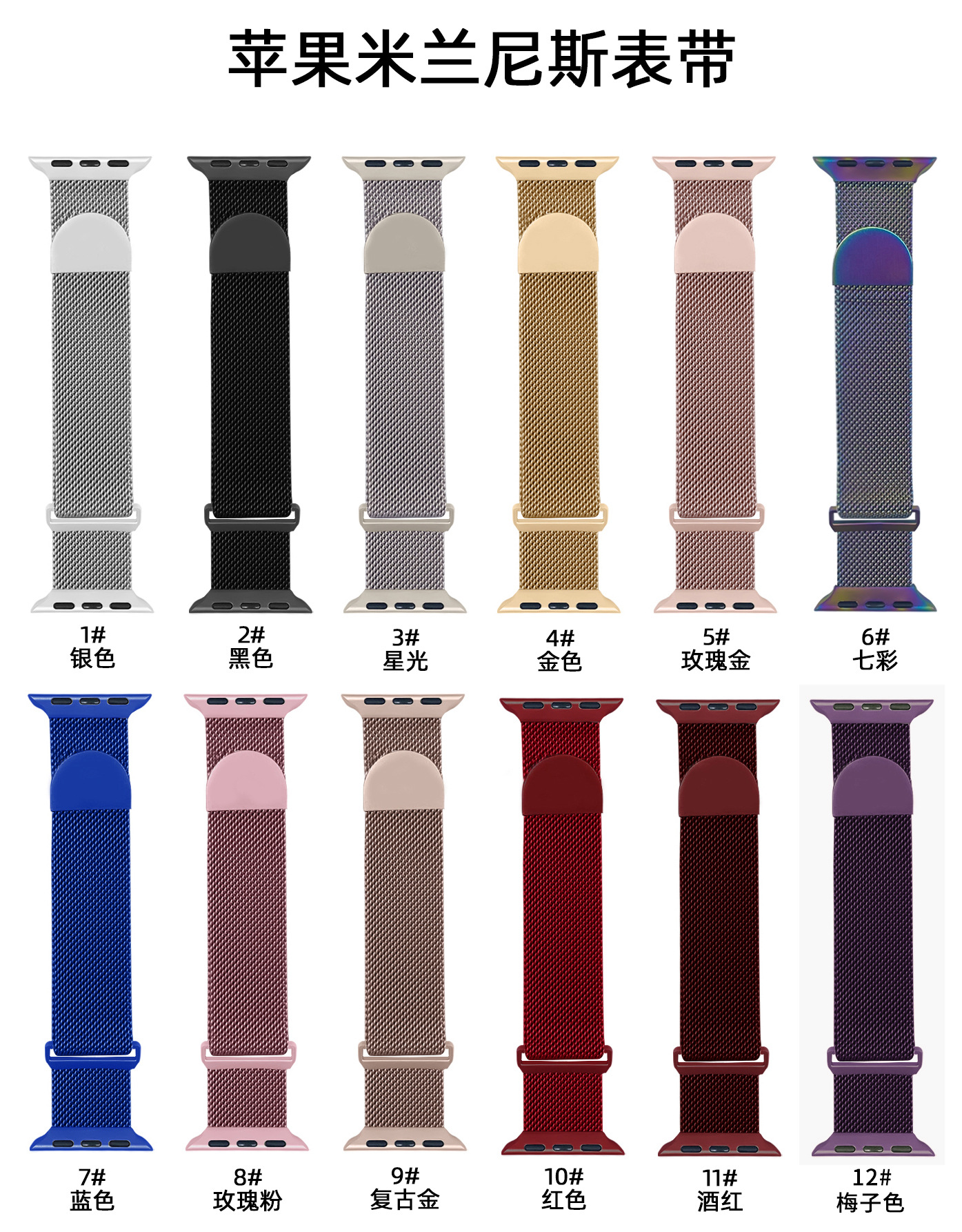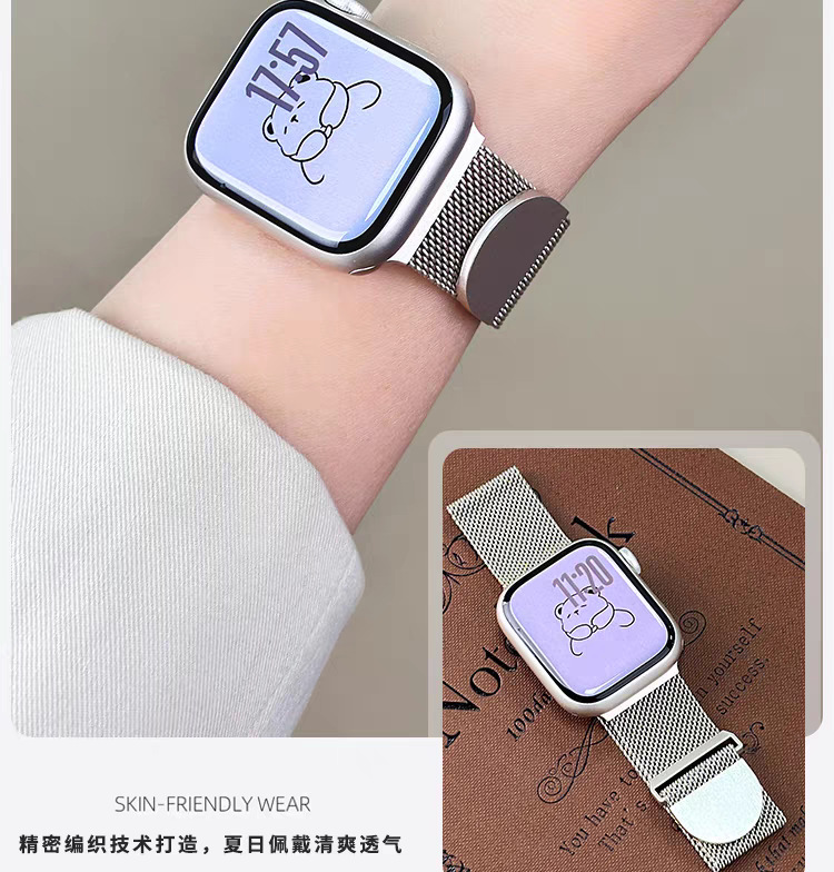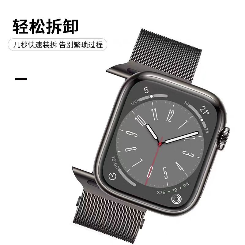 适用苹果表带AppleWatch1-11代/Ultra3/SE3米兰尼斯双节圆尾网带