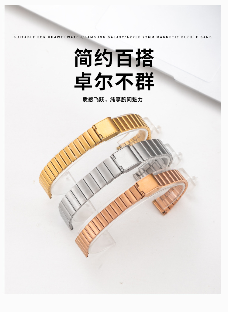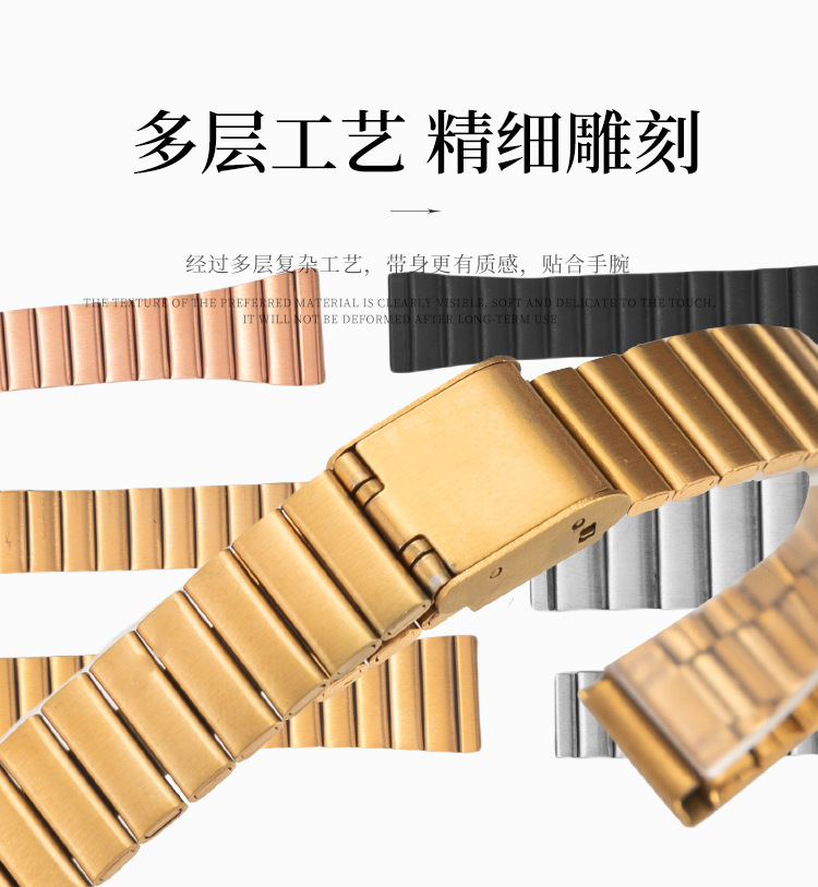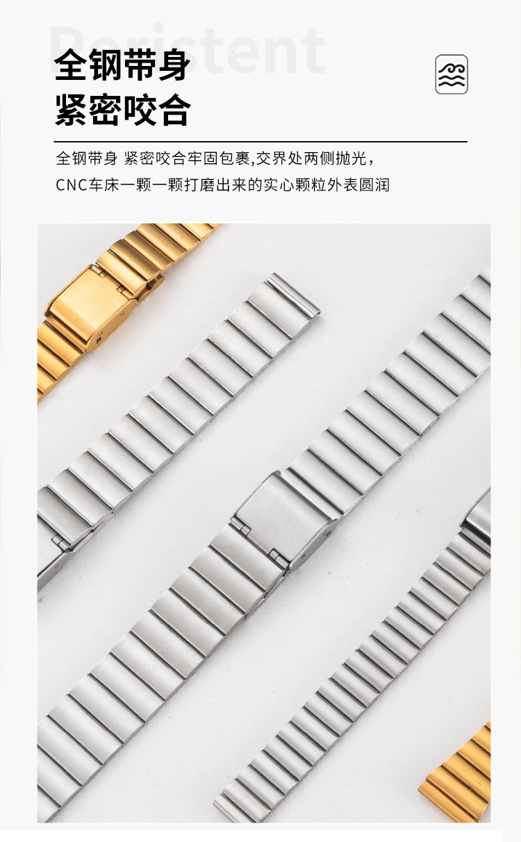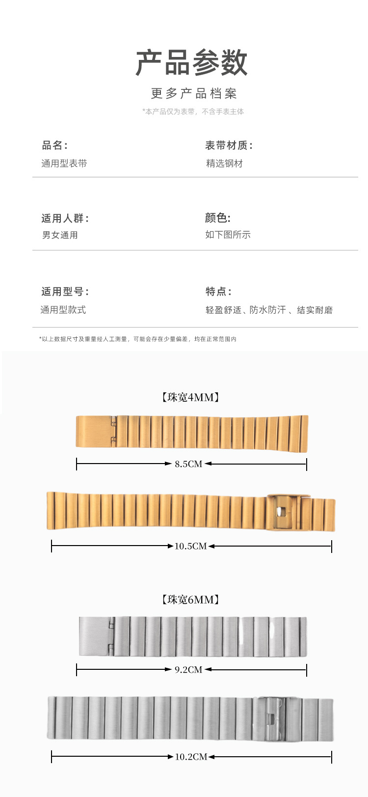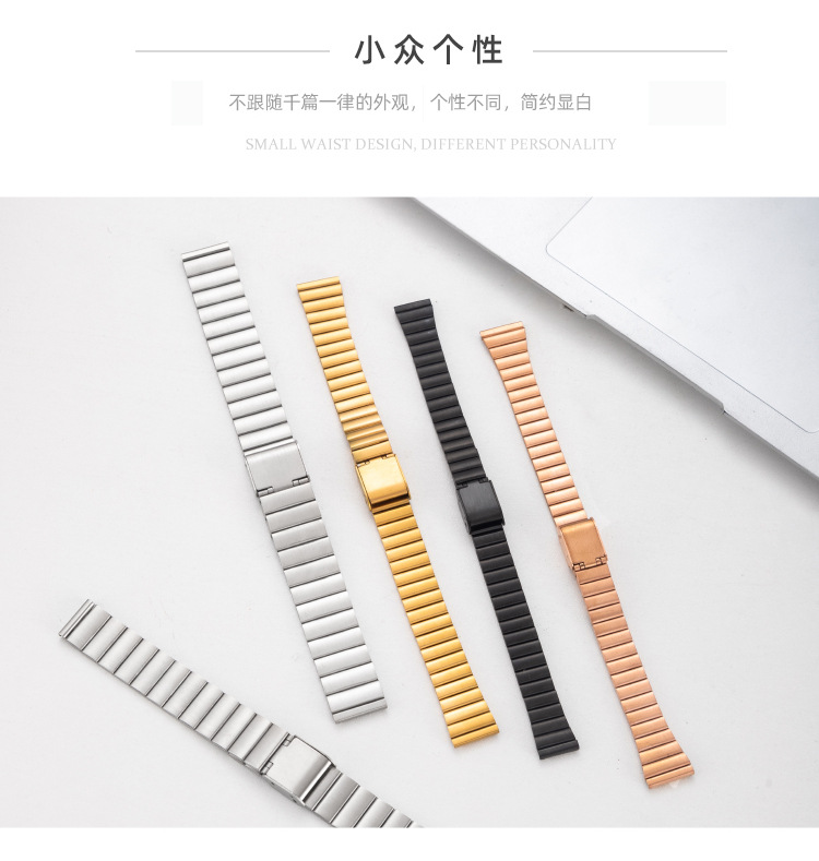 不锈钢一珠手表带弧面竹节女款金属表带小蛮腰dw表带配件