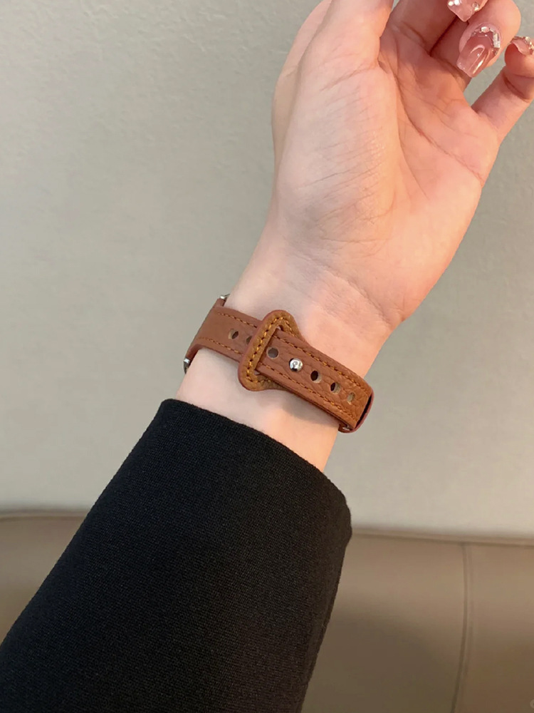 真皮荔枝纹女适用iwatch11代苹果手表带S10高级感applewatch987SE