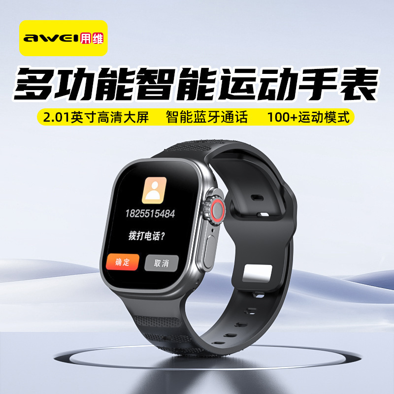 Awei智能手表2.01英寸大屏长续航心率血氧血糖运动蓝牙电话手表