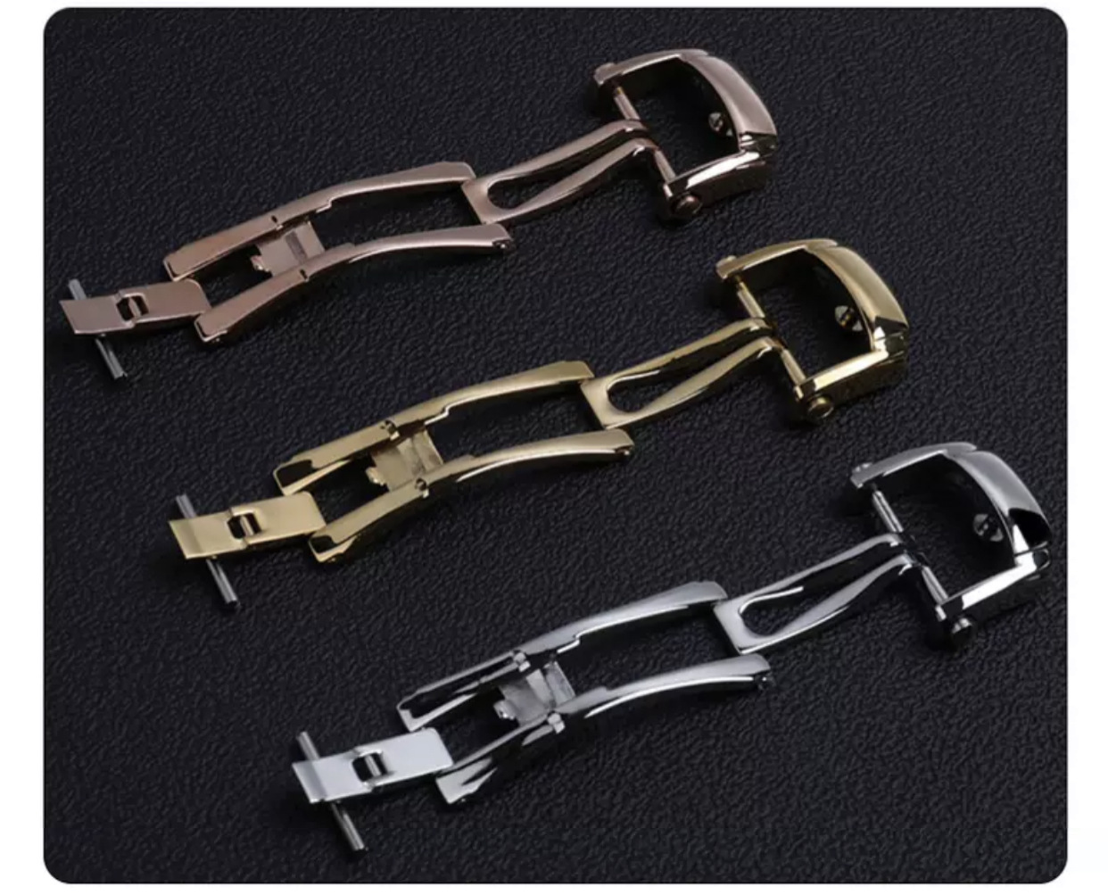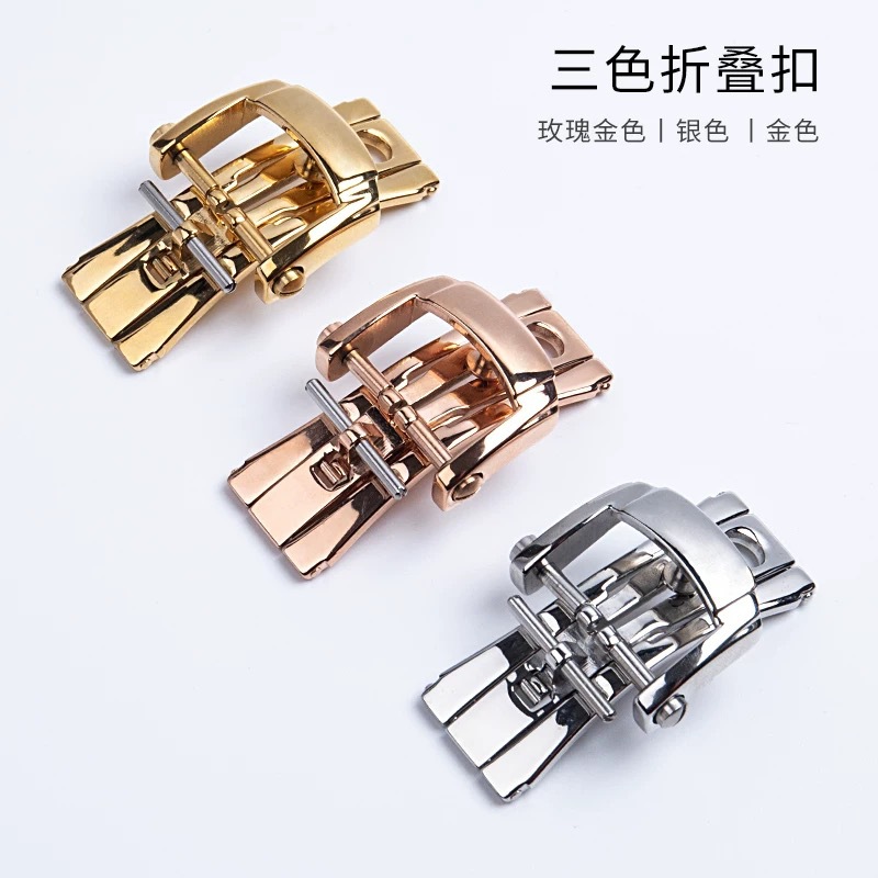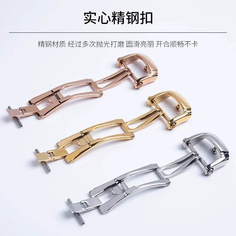 适用百达3不锈钢表扣蝴蝶扣鹦鹉螺皮胶带扣配件折叠扣针扣皮带
