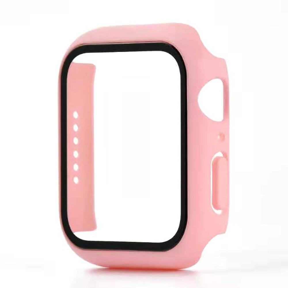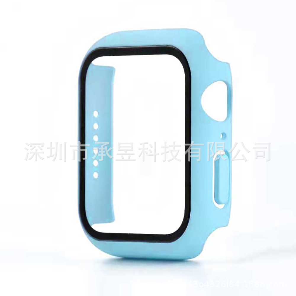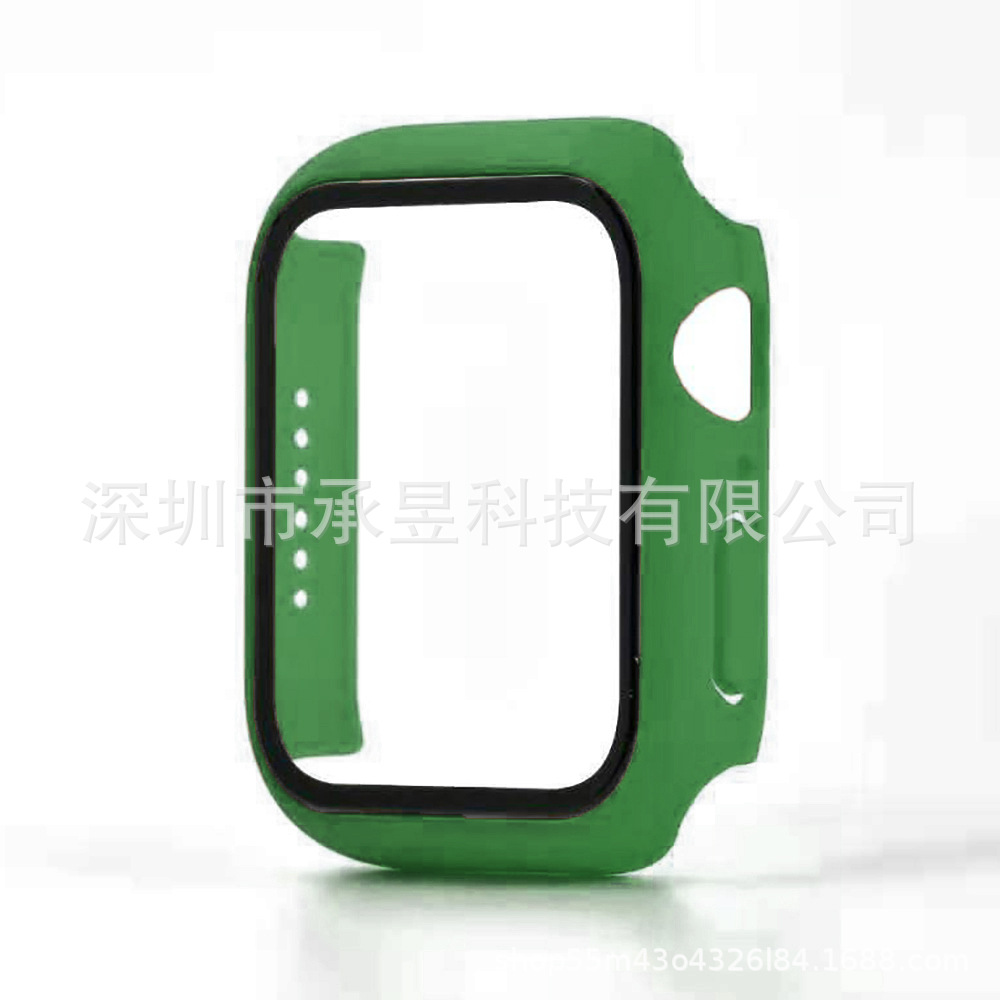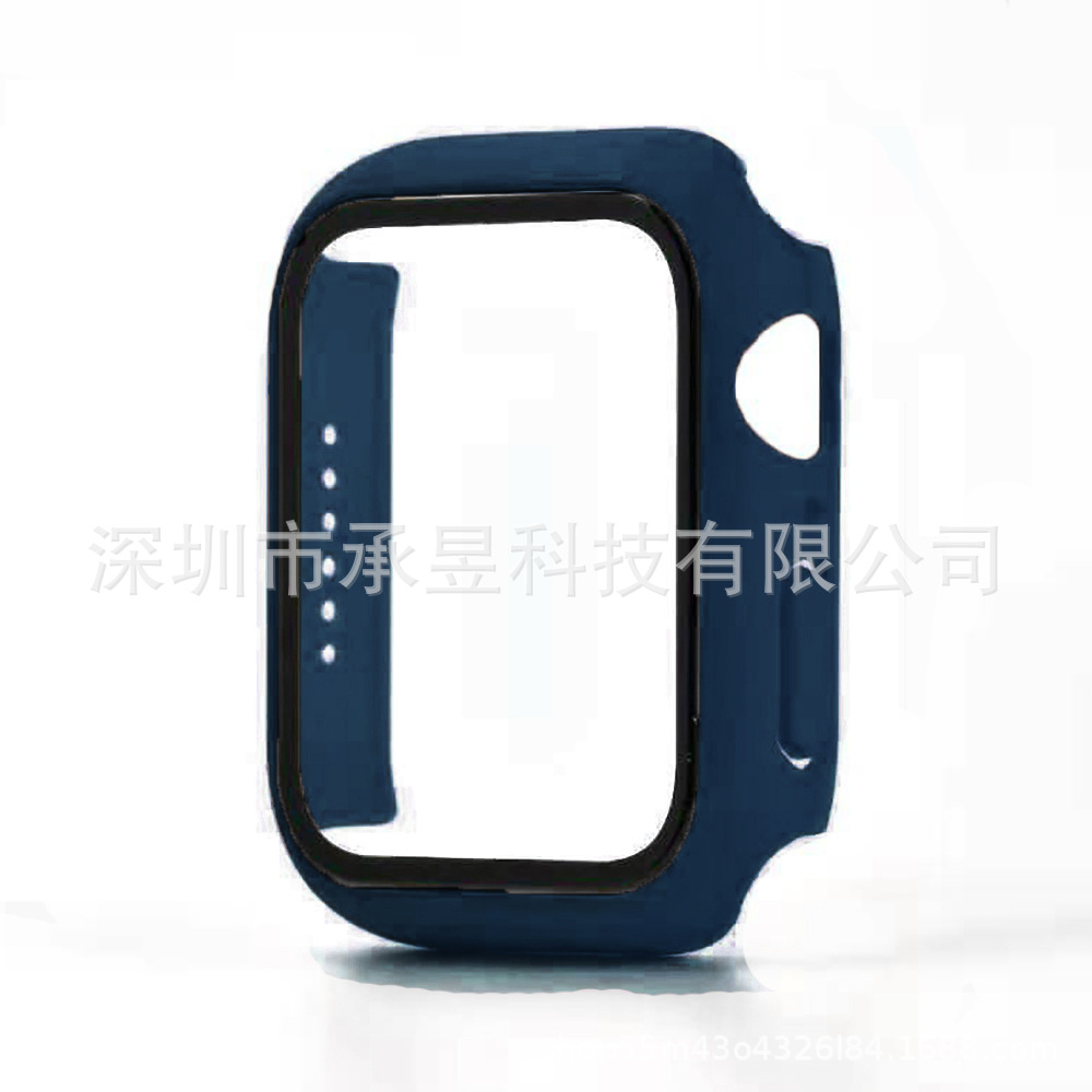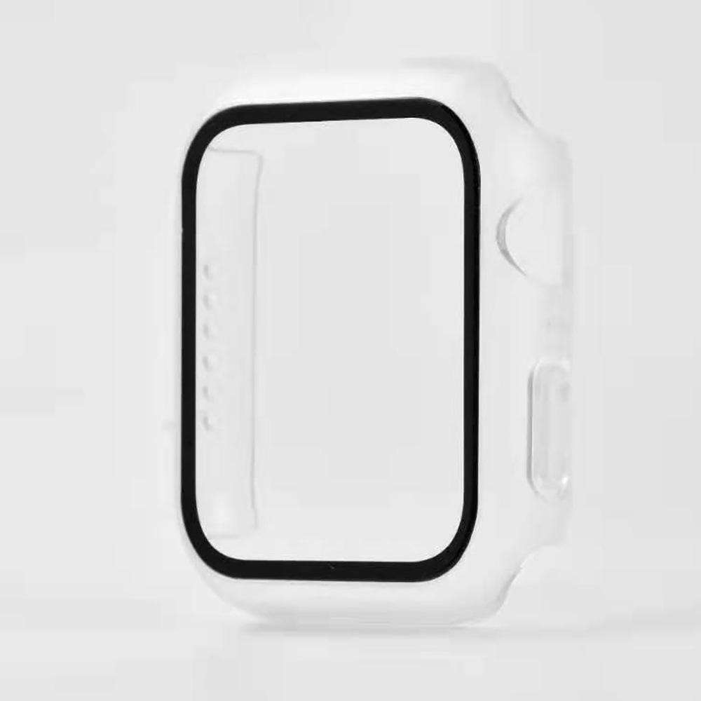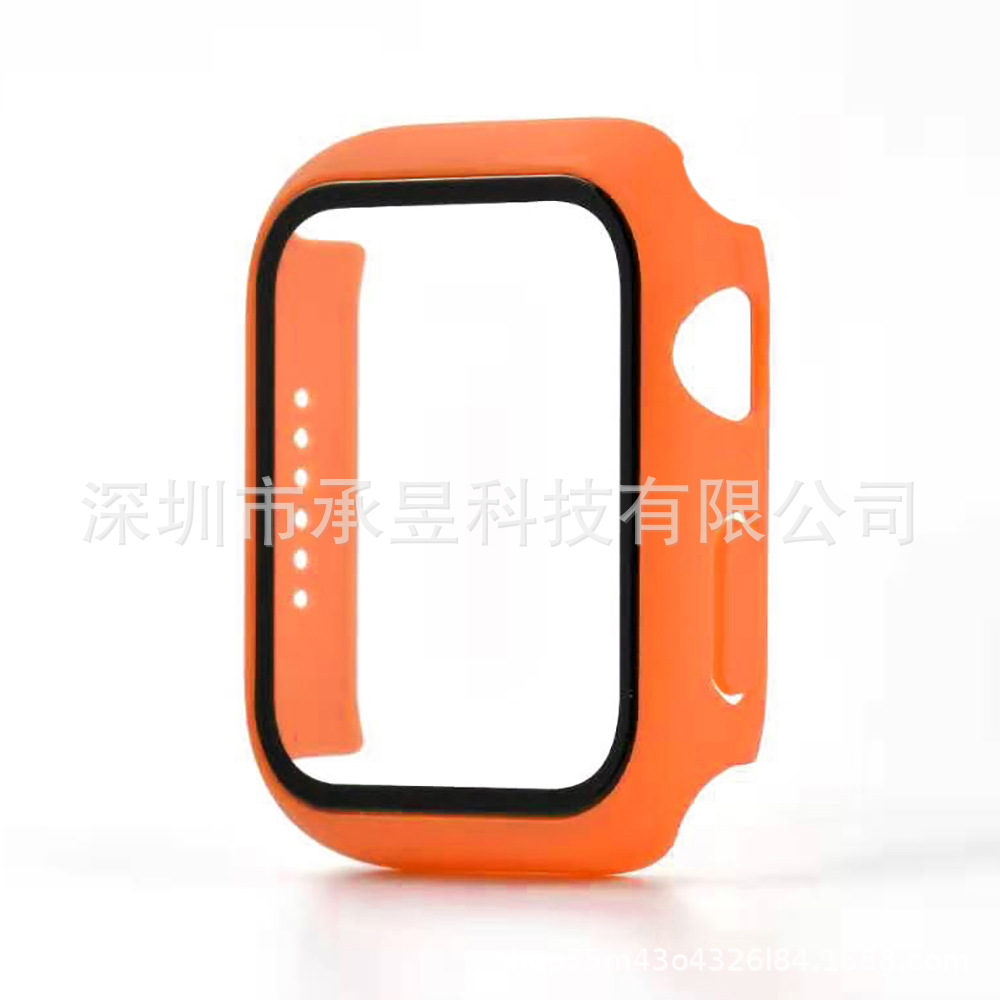 适用苹果手表壳iwatch7/se/6/5/4321保护壳PC+钢化膜一体保护壳