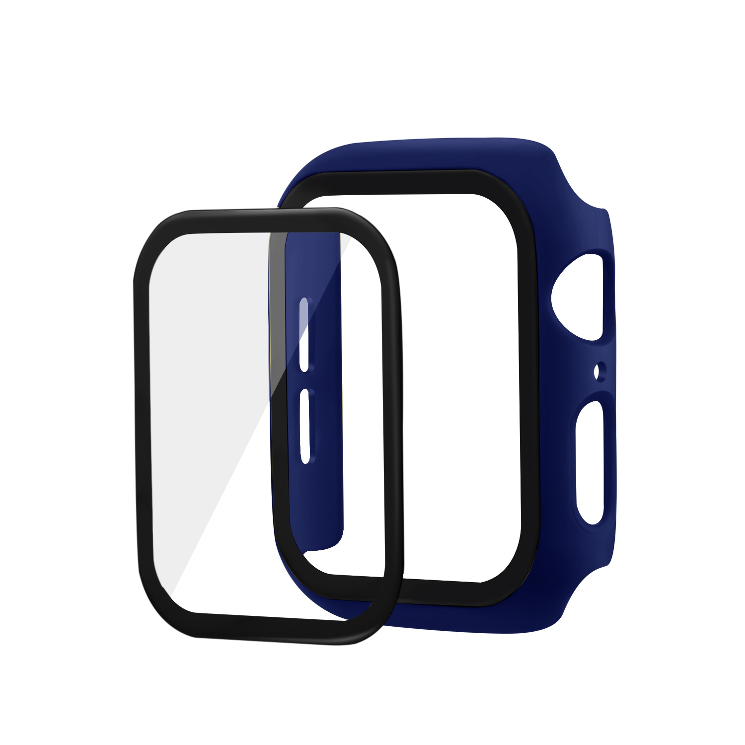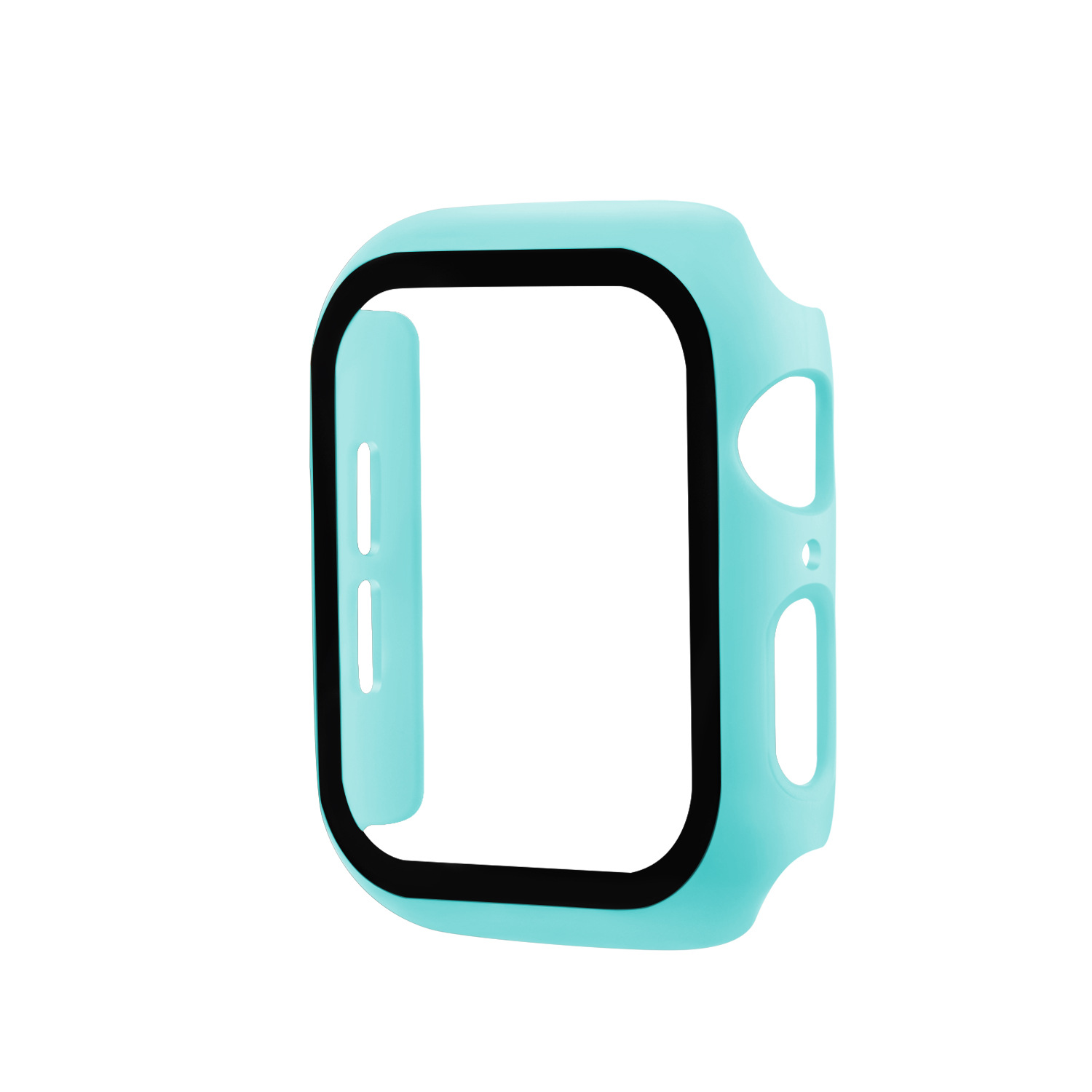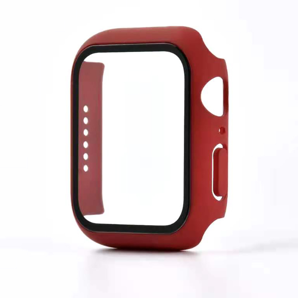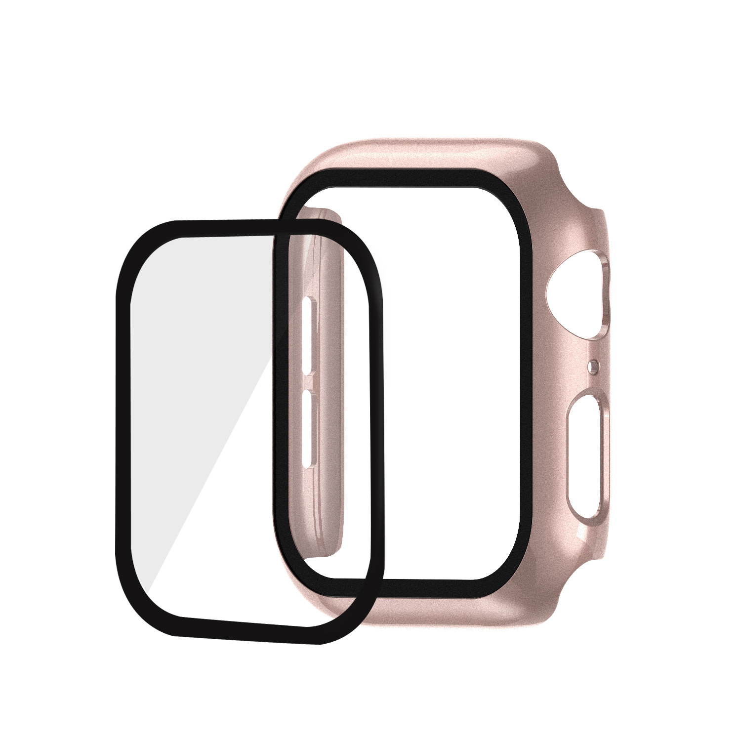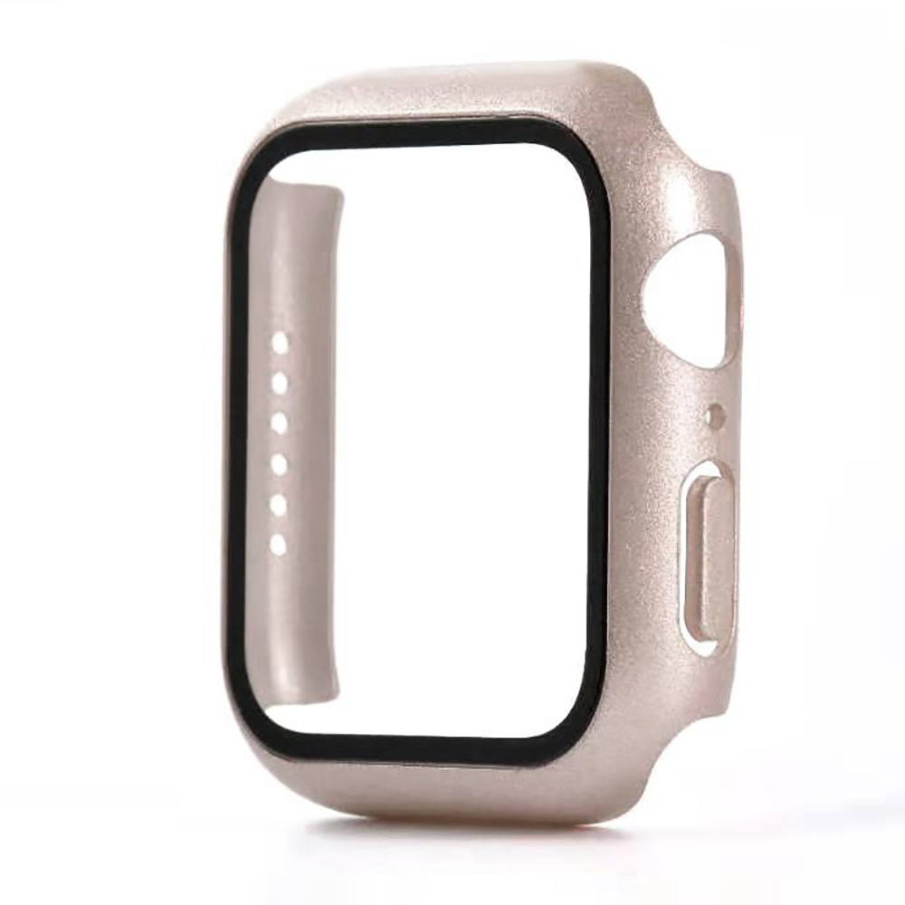 适用苹果手表壳iwatch7/se/6/5/4321保护壳PC+钢化膜一体保护壳
