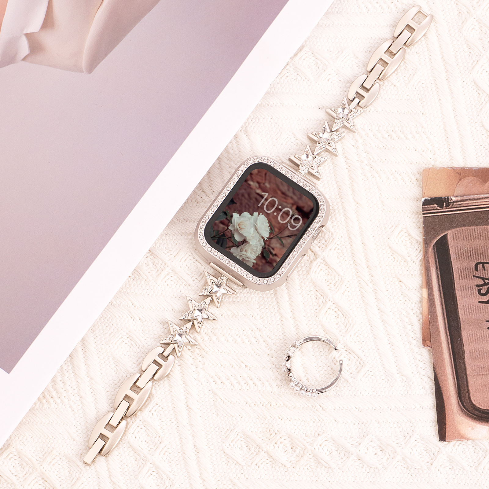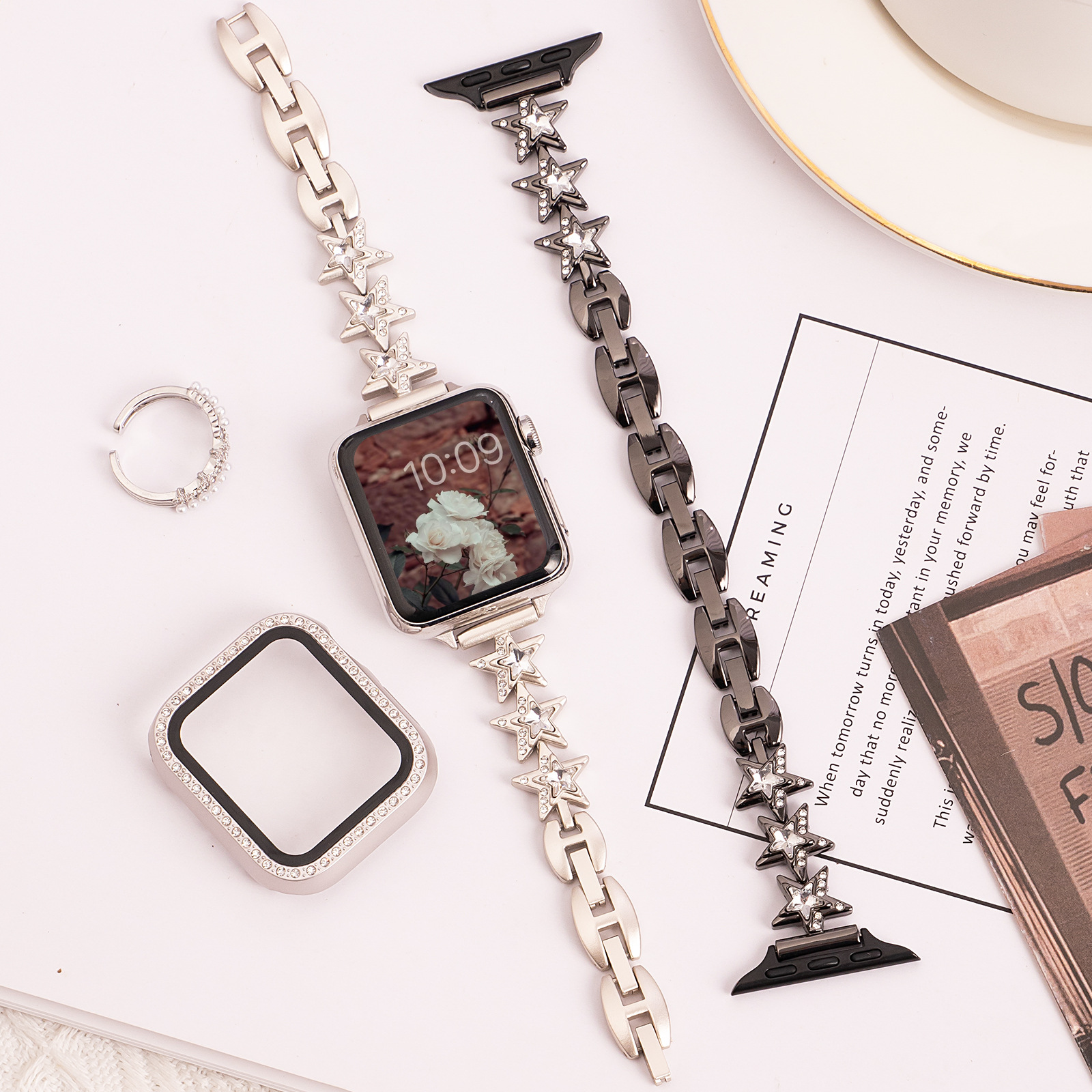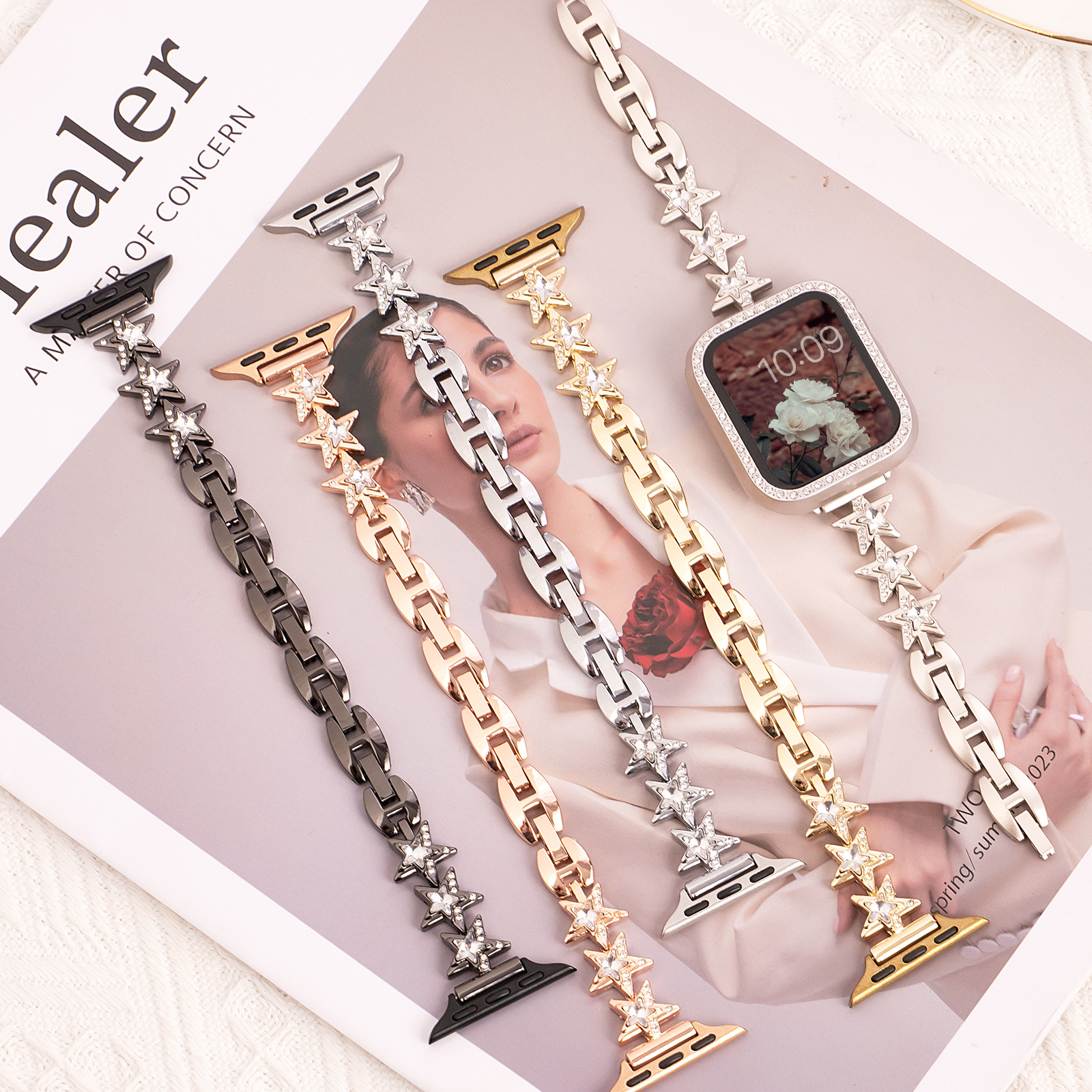 适用于苹果applewatch手表带五角星金属细款链条iwatchS11手表带