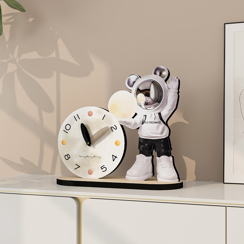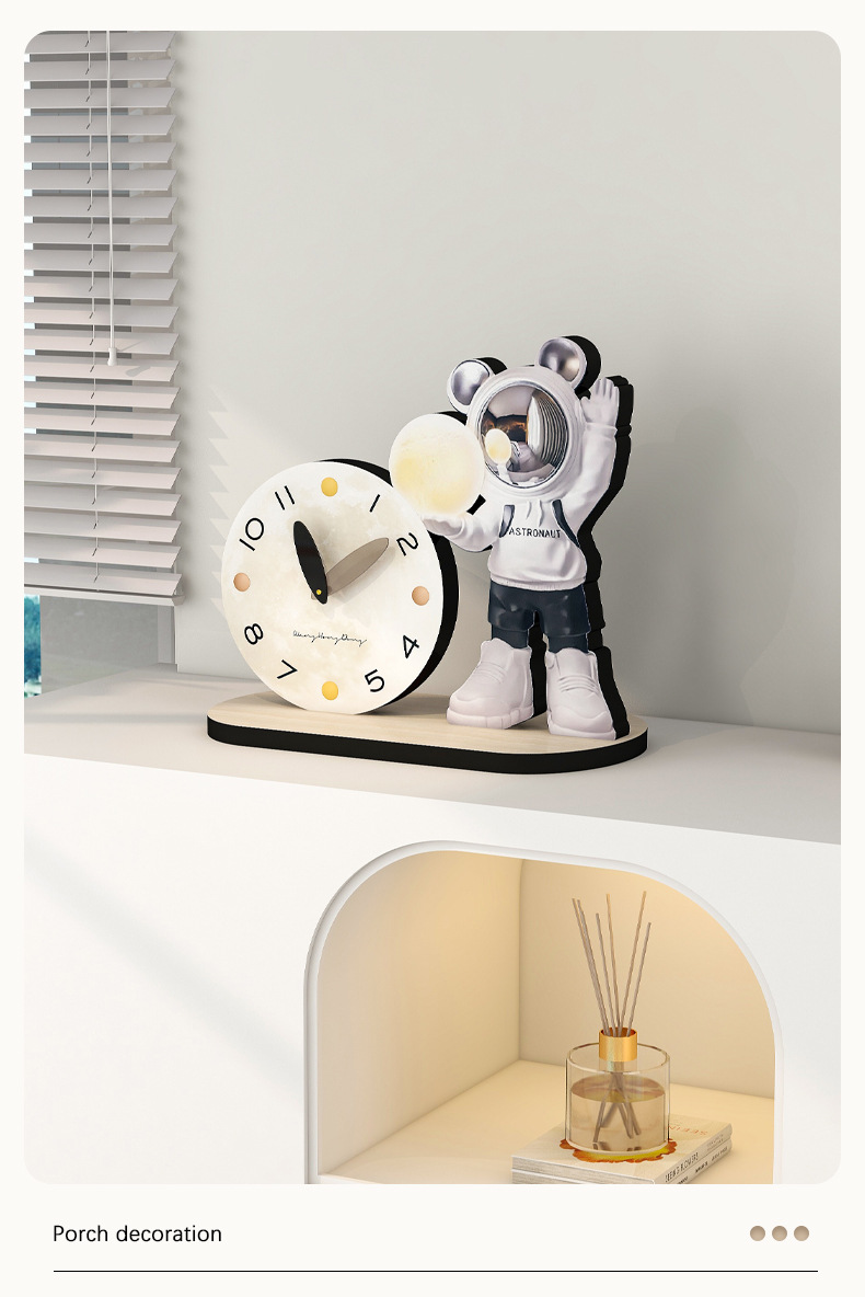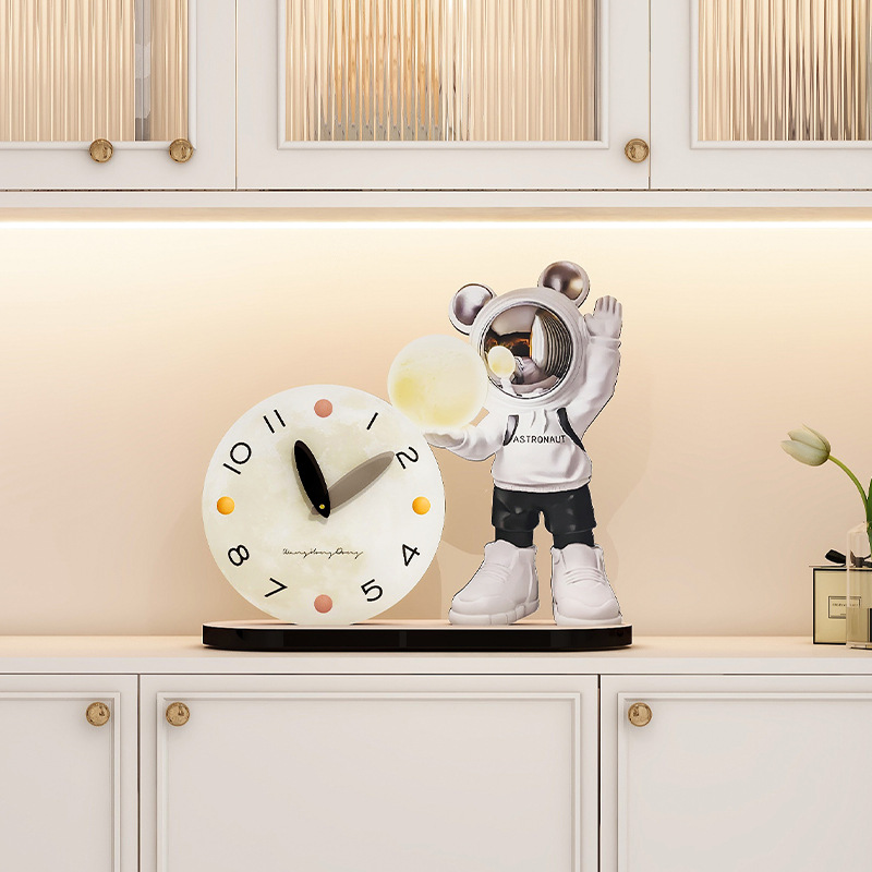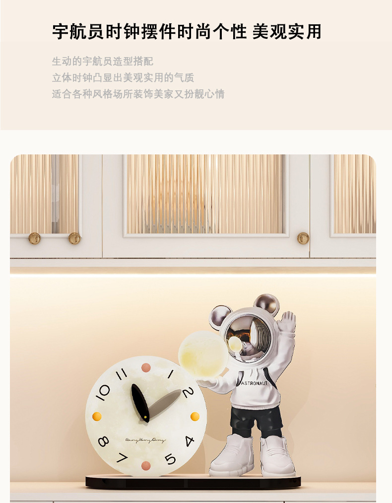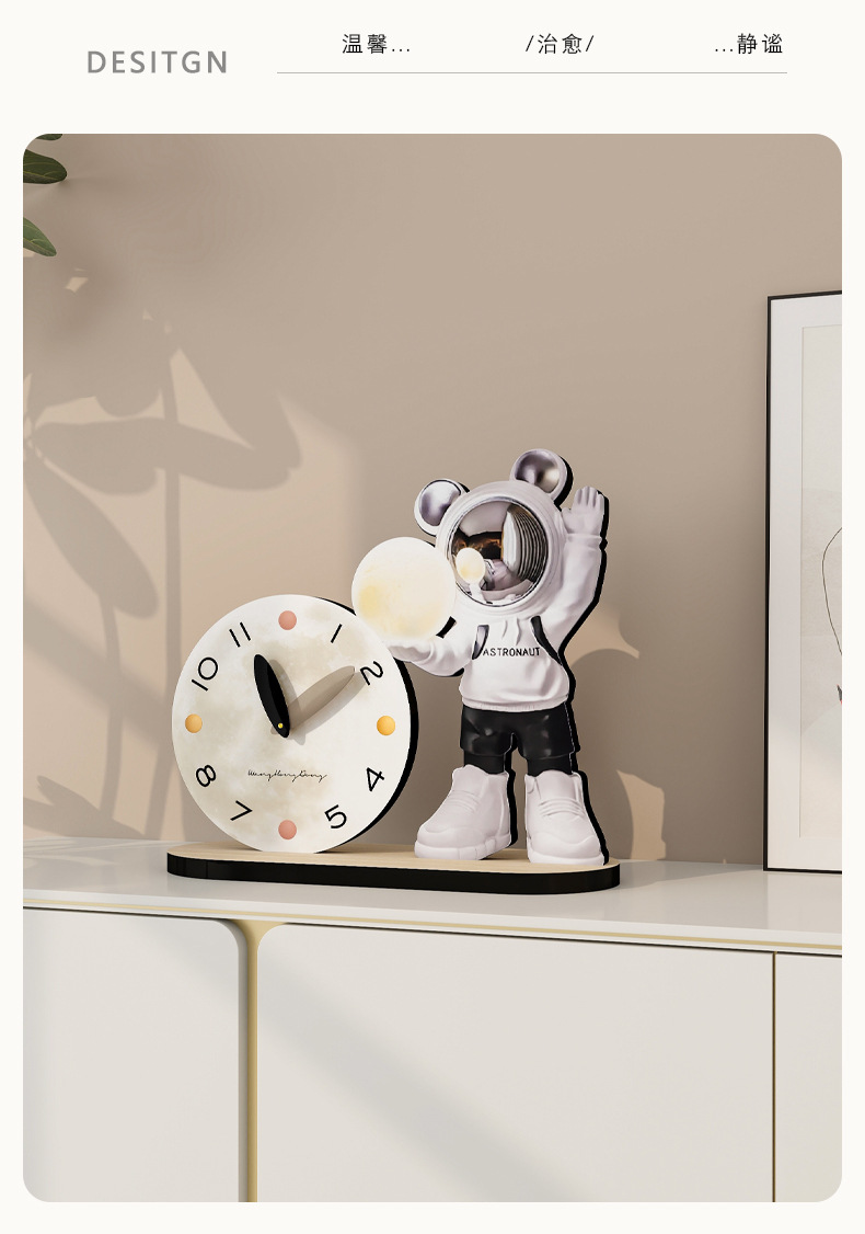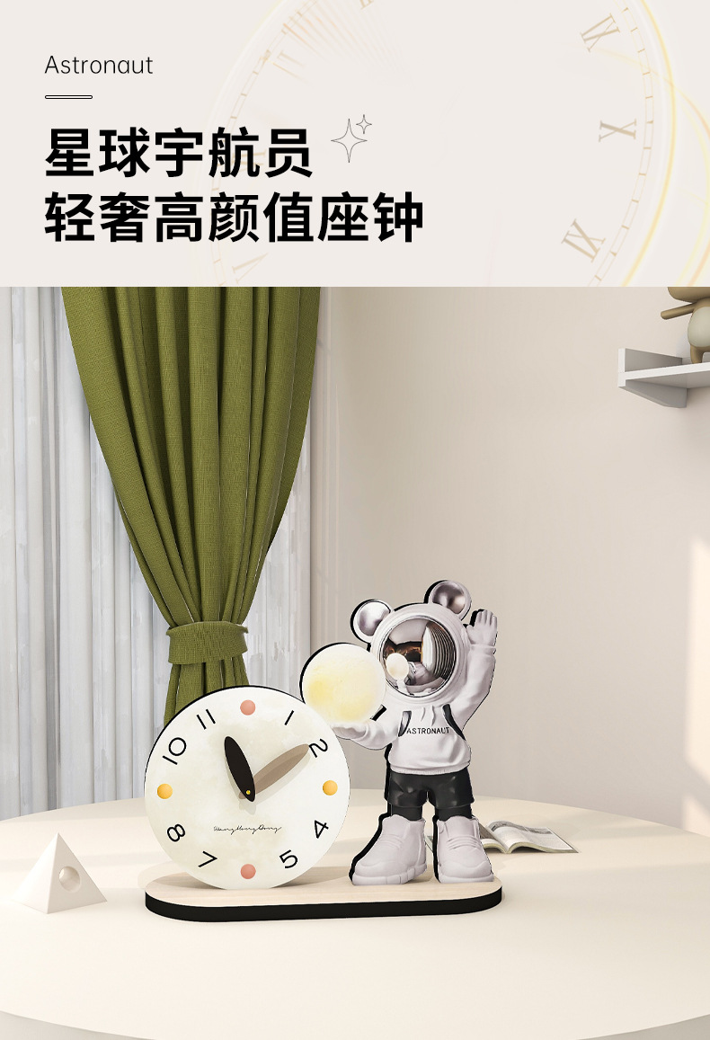 创意太空人桌面时钟现代简约座钟客厅高级感家用玄关餐厅装饰钟表