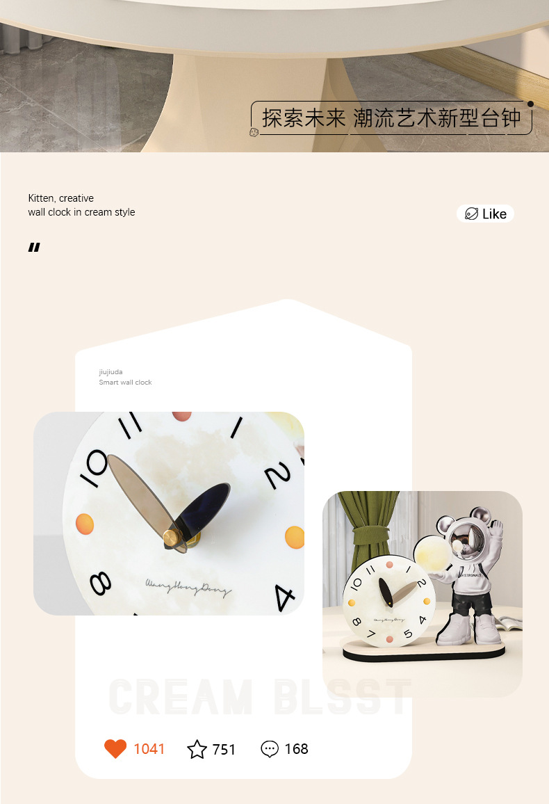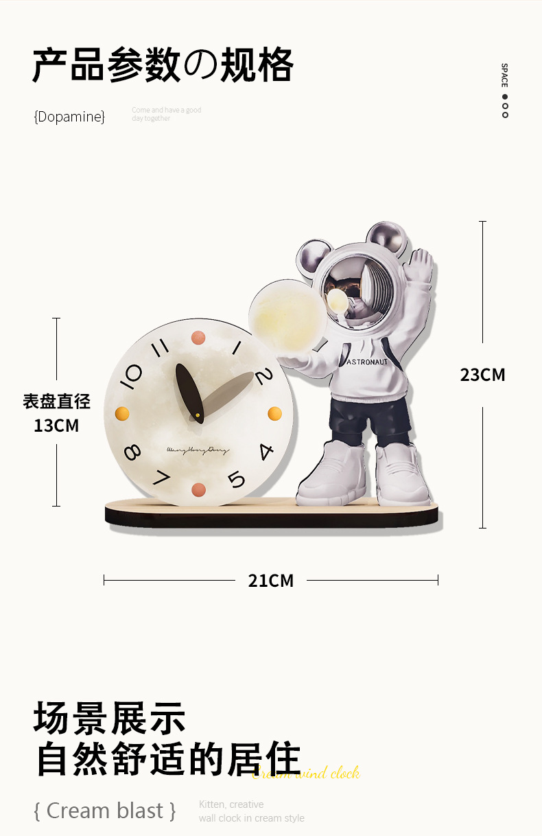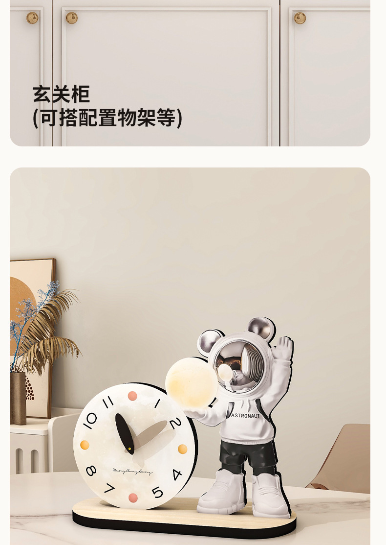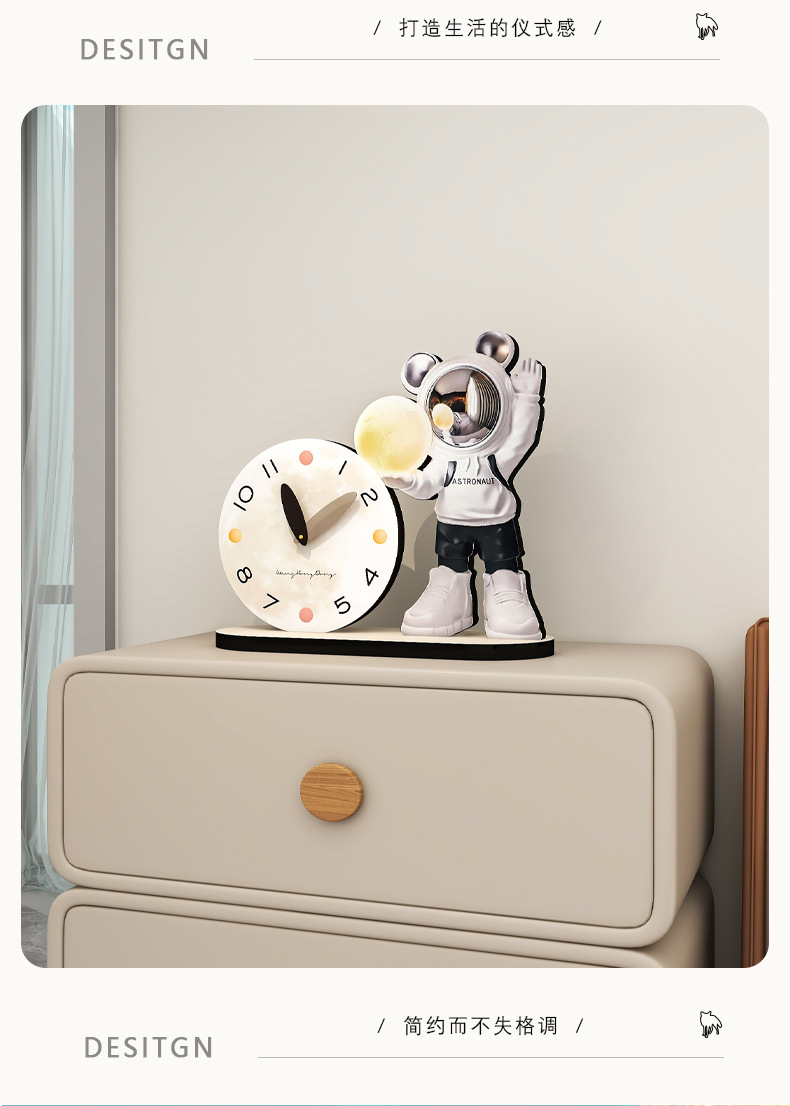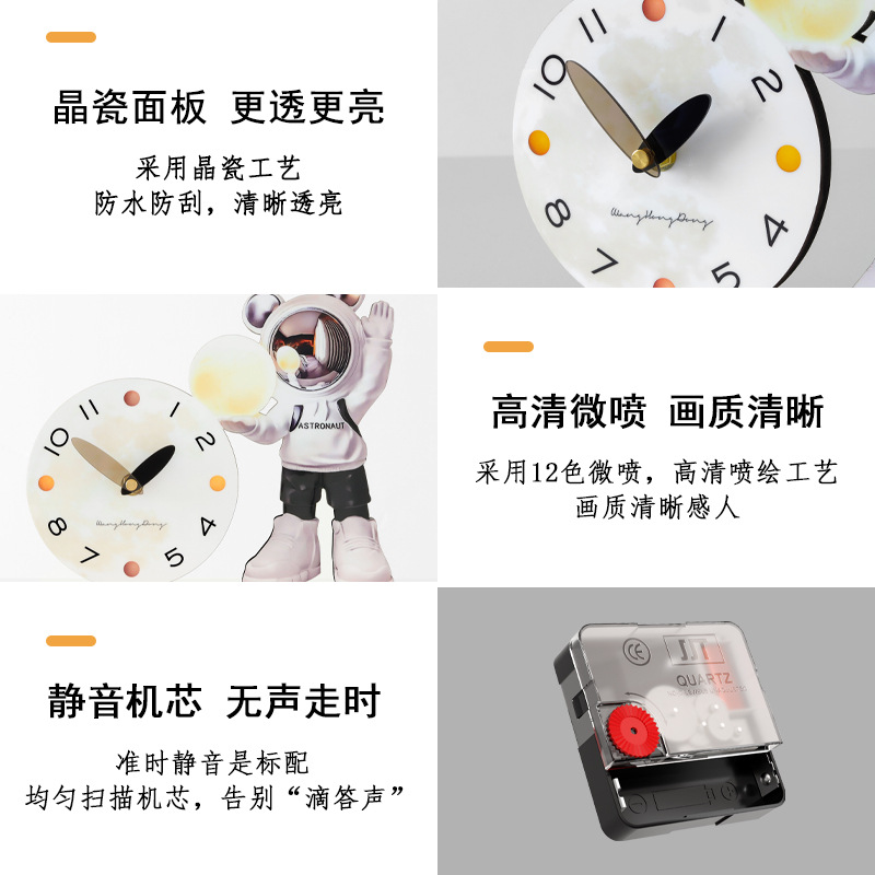 创意太空人桌面时钟现代简约座钟客厅高级感家用玄关餐厅装饰钟表