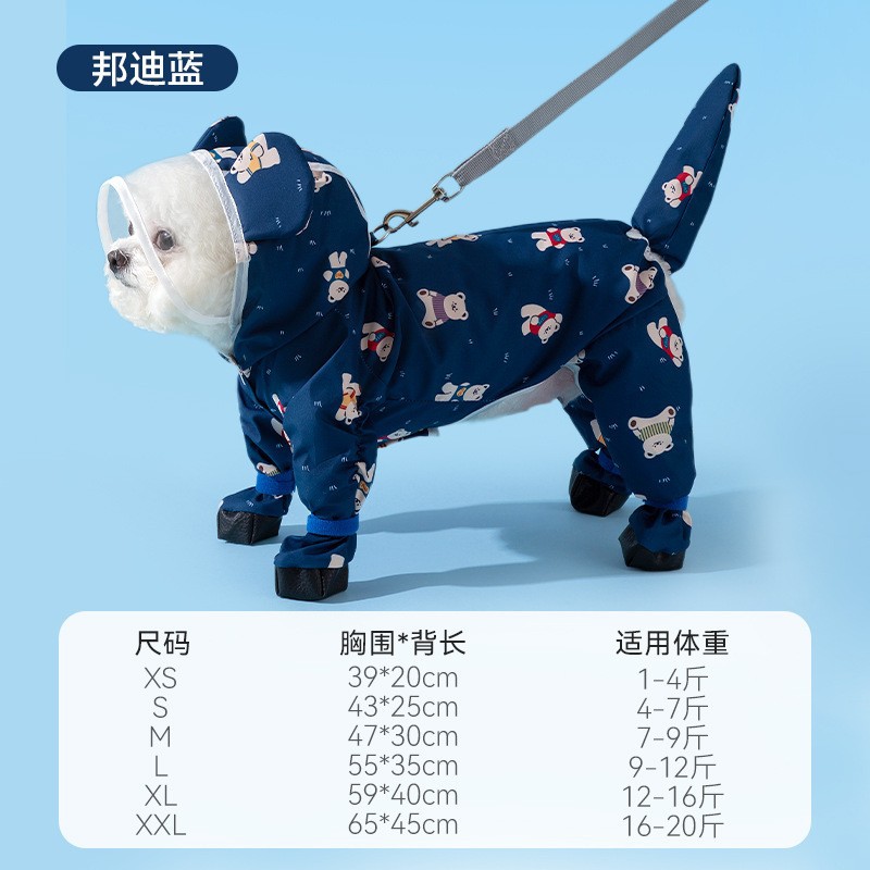 可牵引小狗狗四脚雨衣防水全包连脚小型犬比熊泰迪宠物雨天衣服