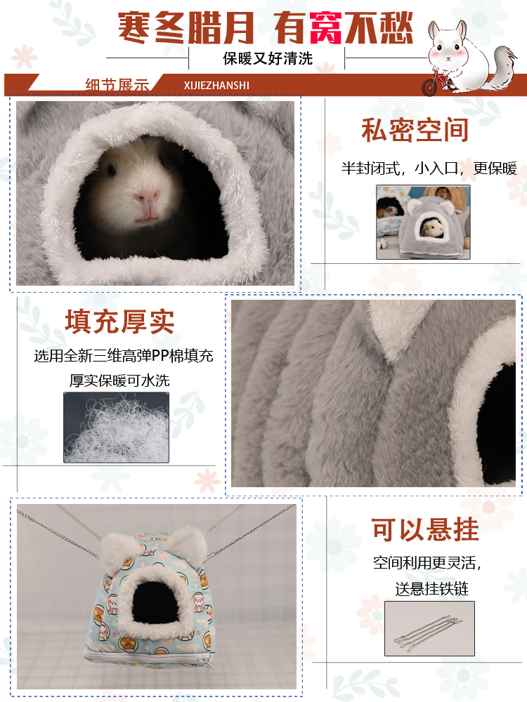 荷兰猪棉窝龙猫保暖窝花枝鼠冬季窝侏儒兔刺猬鹦鹉松鼠窝蜜袋鼯窝