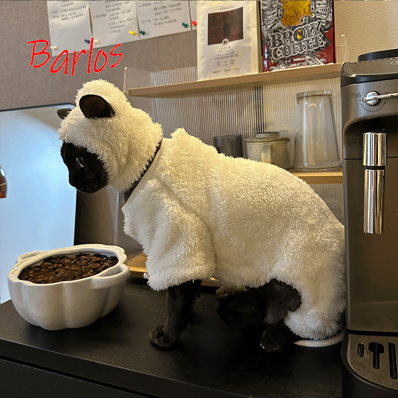 小羊肖恩猫衣服秋冬保暖四脚服斯芬克斯德文猫羊羔双面绒棉衣