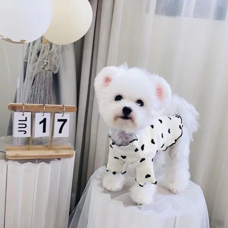 春夏薄款狗狗衣服小型犬猫咪可爱居家打底衫背心泰迪比熊爱心卫衣