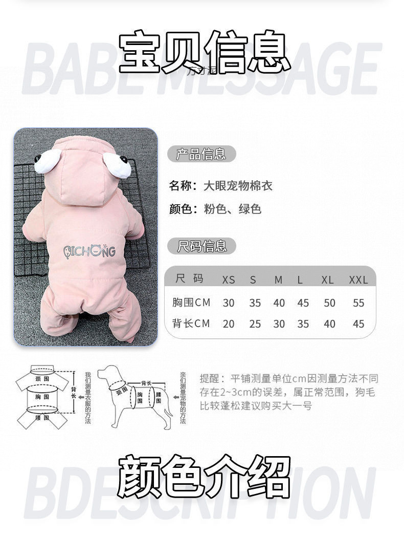 狗狗羽绒服四脚衣冬装加厚保暖棉服泰迪猫咪比法斗宠物衣服