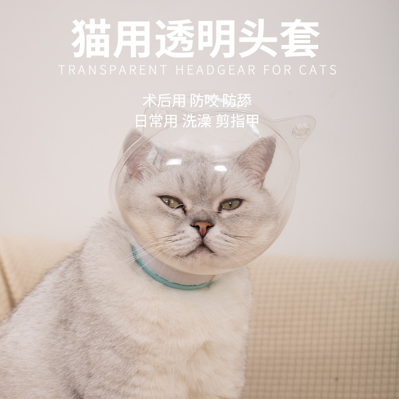 新款宠物透明猫头套头罩塑料猫口罩防咬防舔猫头罩伊丽莎白圈
